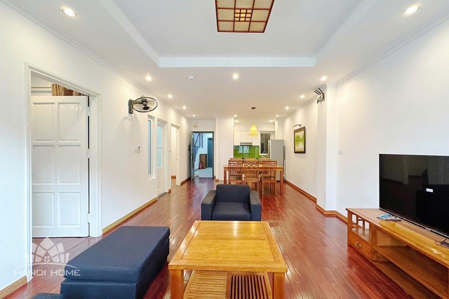A peaceful, newly renovated 2-bedroom apartment in To Ngoc Van, Tay Ho. This newly renovated 2-bedroom apartment is located in a quiet alley on To Ngoc Van Street, Tay Ho. The apartment is bright and airy with large windows that bring in plenty of natural light. It features a cozy living room, a modern kitchen with full appliances, two comfortable bedrooms, and well-designed bathrooms. The interior has been recently upgraded with new furniture and equipment, creating a fresh and welcoming atmosphere. Situated in a calm neighborhood yet close to many cafes, restaurants, and daily amenities around To Ngoc Van Street.