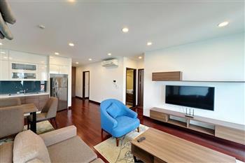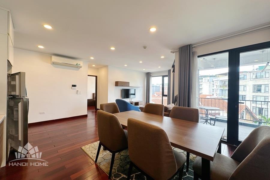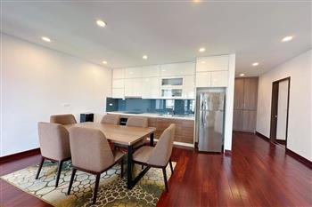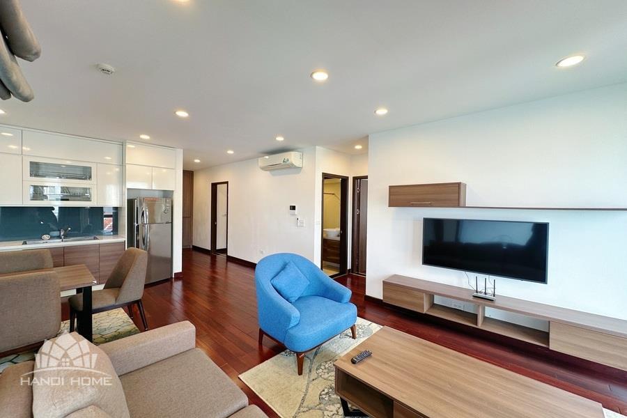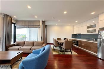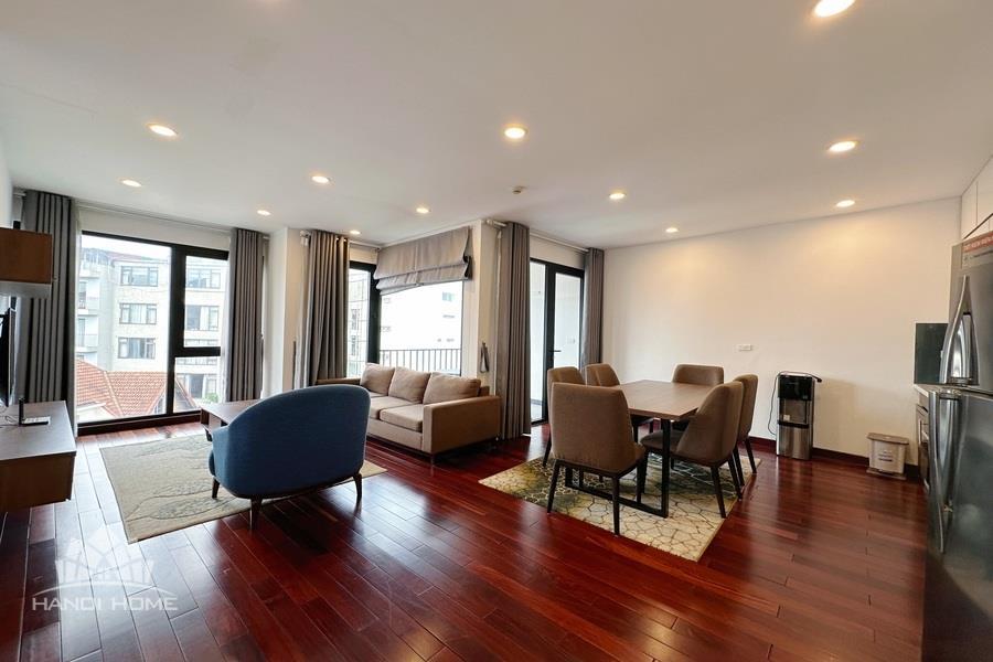This exceptionally bright and fully-furnished apartment is located on To Ngoc Van, the heart of Tay Ho. The open-plan living area features striking natural hardwood flooring and large glass doors, ensuring an airy feel and access to a private balcony with charming city views.