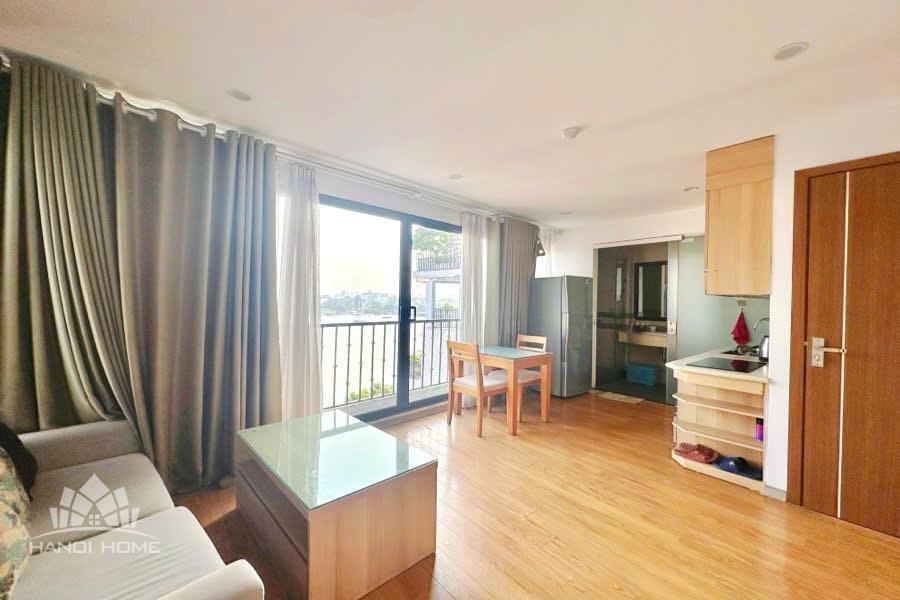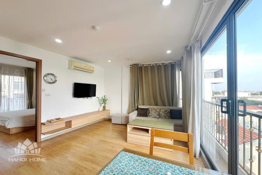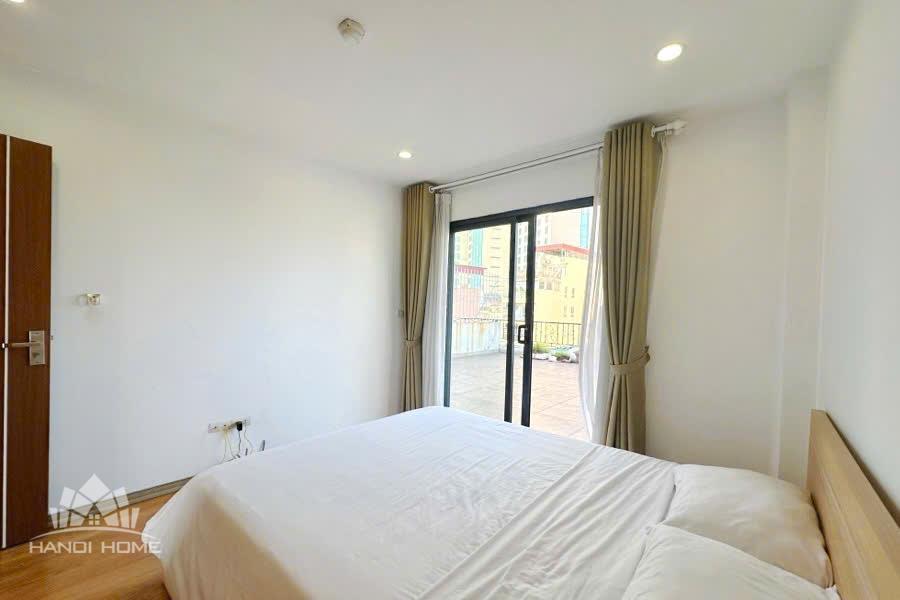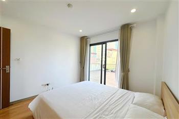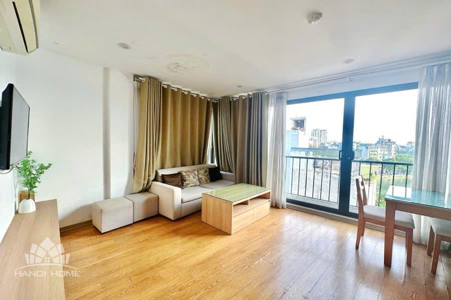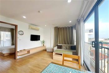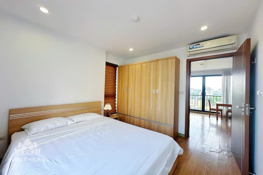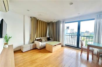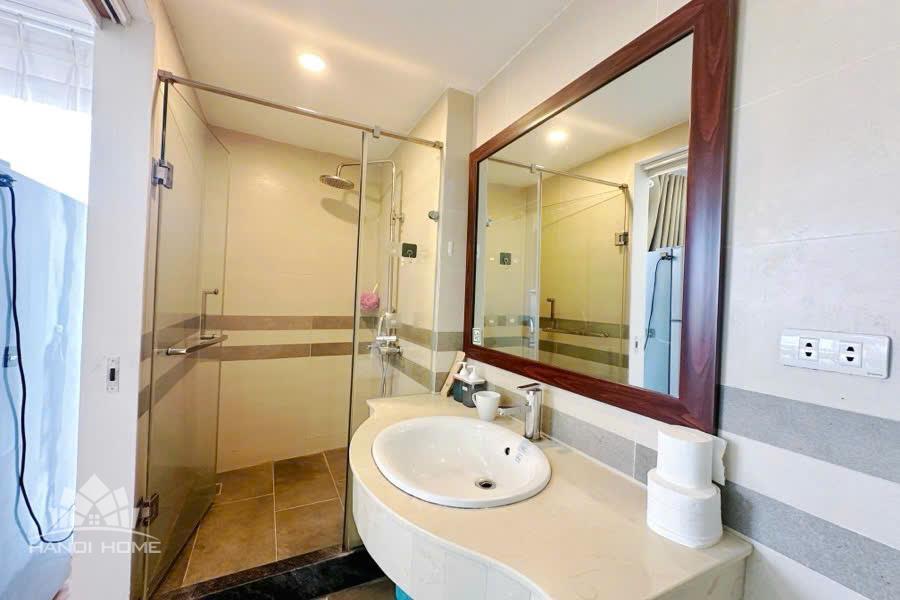 The highlight of this space is the spacious balcony and large glass door providing a beautiful city and neighborhood view. This ensures the apartment is always filled with natural light and fresh air. The unit is fully furnished and ready for immediate move-in within the convenient Ba Dinh District.