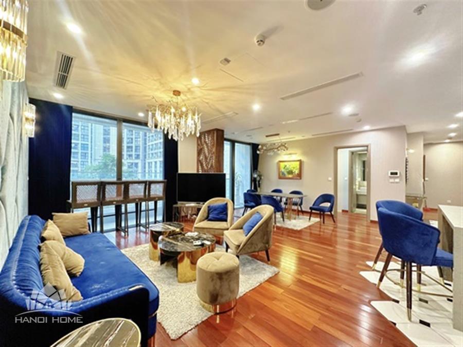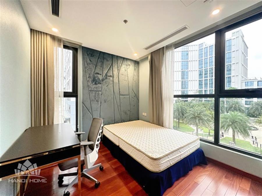 This elegant luxury apartment for rent is located on high floor at S6 Building Symphony Vinhomes Riverside Hanoi. It was designed modern. The apartment has stunning views internal area and the City of Hanoi. its interior design combines art with pieces of original designers to create a unique atmosphere. it has total living area of m2. While the interior has been designed in a color palette of brown and white.The spacious living room is furnished with leather furniture and a wood table, there is a nice balcony with two chairs and coffee table for enjoying a beautiful view of the the City. Modern kitchen with high quality equips and dining table with white top with 6 chairs. Master Bedroom offer fully furnished with king size bed, large wardrobe, dressing table, Smart TV … there is a big window for master bedroom. The en-suite bathroom offers luxury equips. Vinhomes Riverside Long Bien Ha Noi is great located at Long Bien District, in the Central Business District of Hanoi Facilities: hospital, Vinschool, Shopping mall, Commercial services, Grade A office, and other provided services. For more information, Please call us. Hanoihome