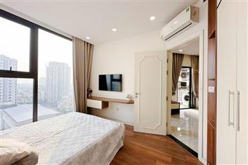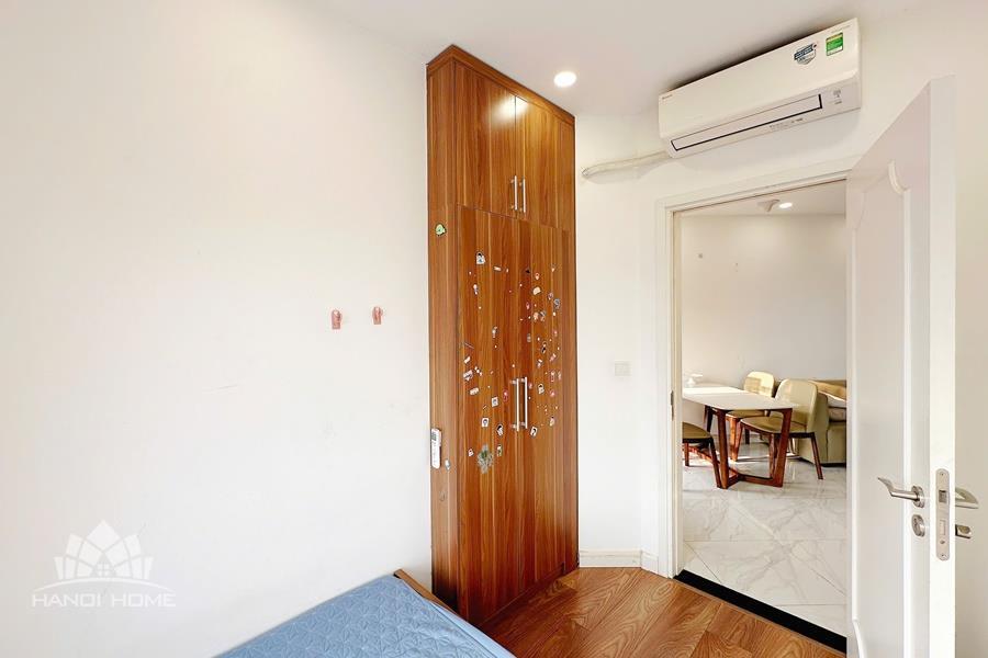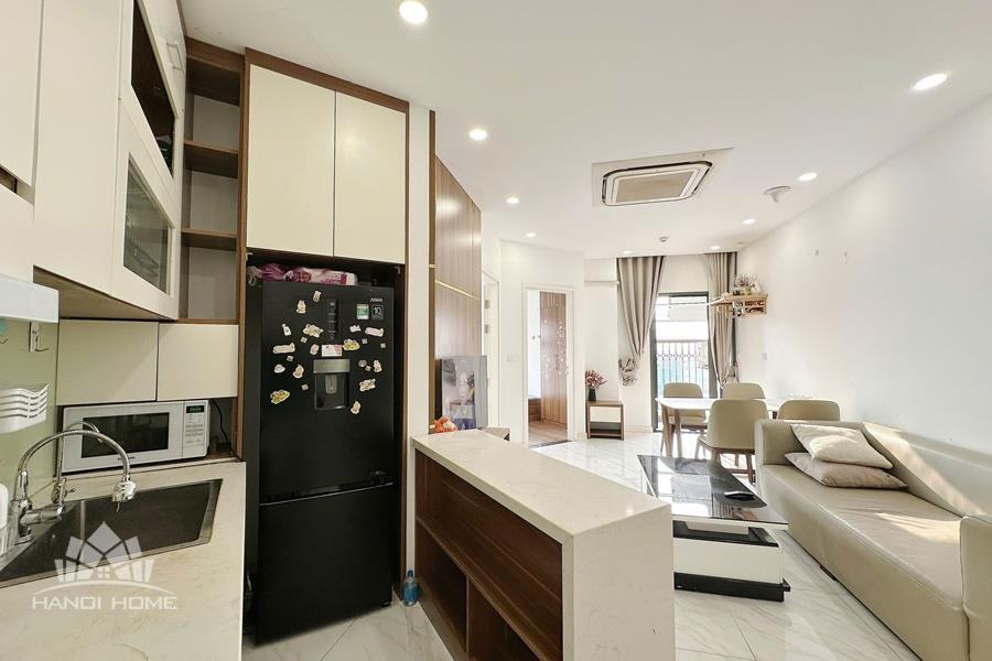 This modern 2-bedroom apartment in El Dorado, Tay Ho features a well-designed, moderate-sized layout that is both practical and comfortable. The apartment is fully furnished with contemporary furniture and tasteful décor, offering a bright and airy living space. Both bedrooms are cozy and well-appointed, suitable for a couple or small family. The open-plan living room and kitchen are modern and functional, equipped with quality appliances. Large windows provide a beautiful view and plenty of natural light throughout the apartment. Located in the El Dorado building, residents enjoy a convenient lifestyle with easy access to West Lake, shops, cafés, and nearby amenities.