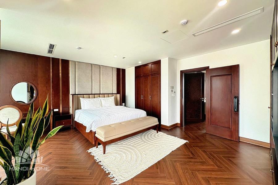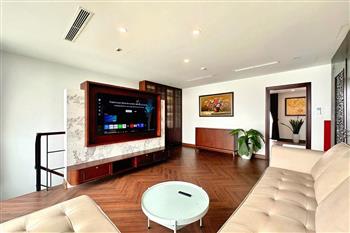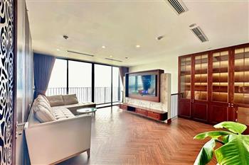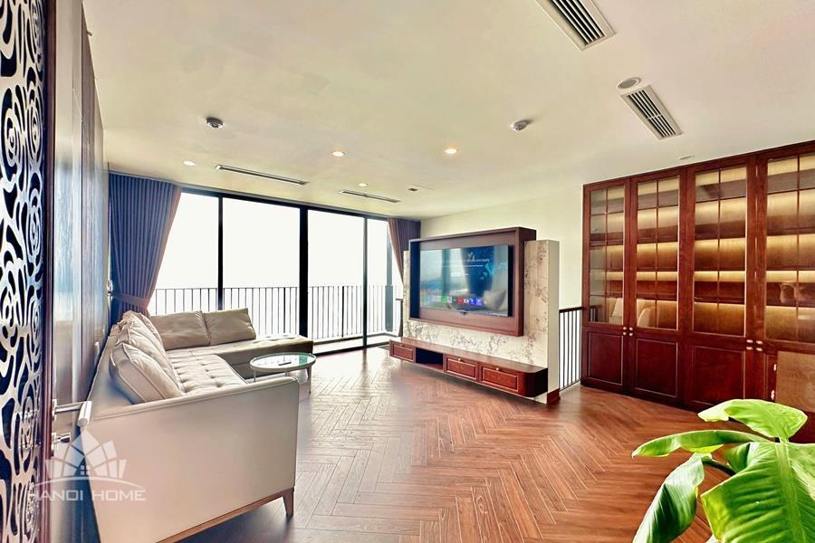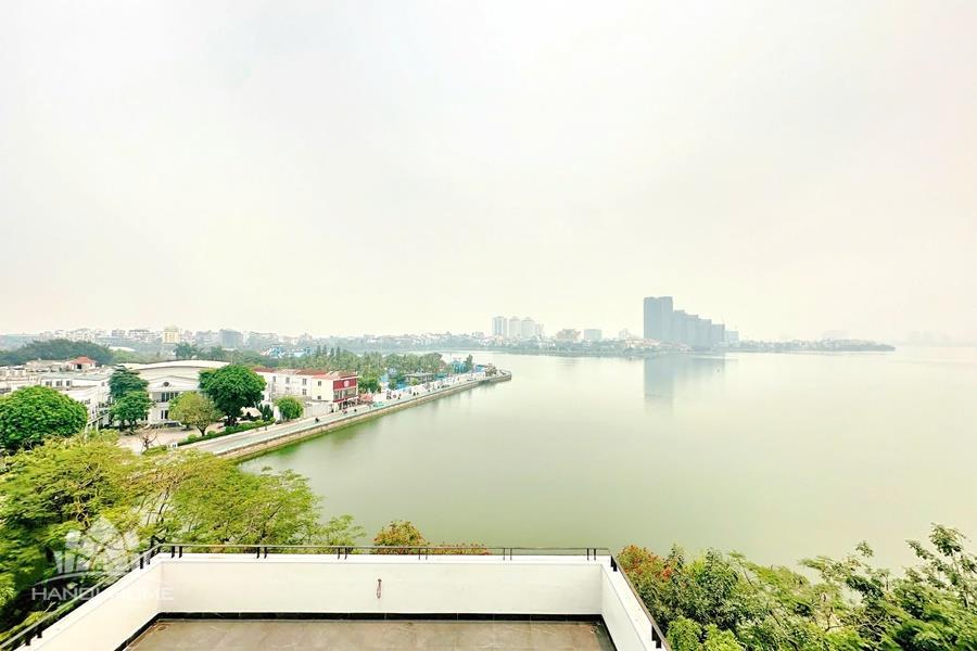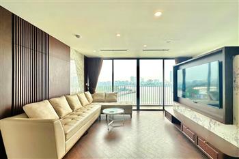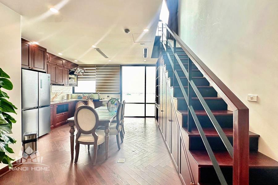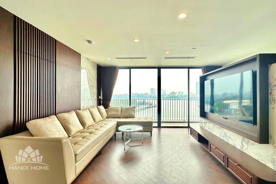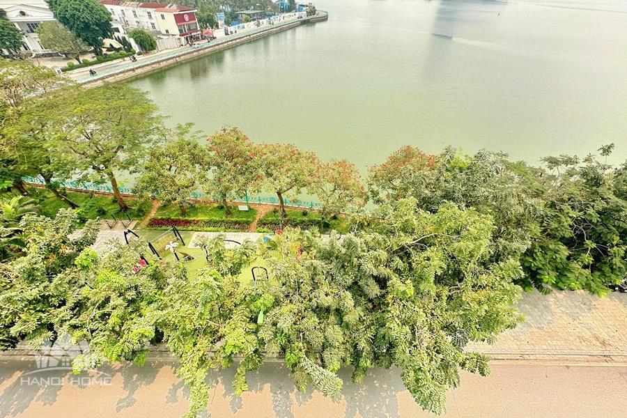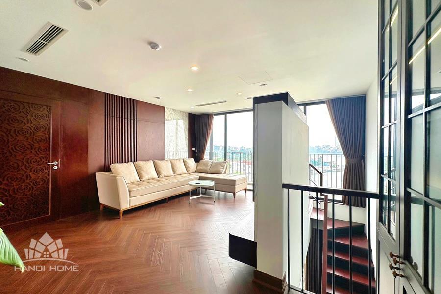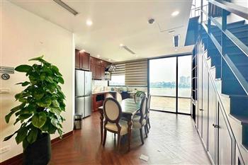 Brand-new lake-view duplex apartment in Nhat Chieu, Tay Ho, featuring 3 fully equipped bedrooms and 3 modern bathrooms. This exceptional home boasts breathtaking panoramic lake views through large windows, filling the space with natural light and a serene atmosphere. The apartment is elegantly designed with high-end, luxurious furnishings and a spacious open-plan living area, perfect for both relaxing and entertaining. The modern kitchen comes fully equipped with top-quality appliances, including a built-in oven, microwave, large refrigerator, and a dishwasher, along with ample storage. Each bedroom is bright and well-appointed with comfortable beds, wardrobes, and tasteful decor, while the bathrooms are stylishly finished with modern fixtures. This duplex offers a perfect blend of comfort, style, and functionality in one of Tay Ho’s most desirable lakefront locations.