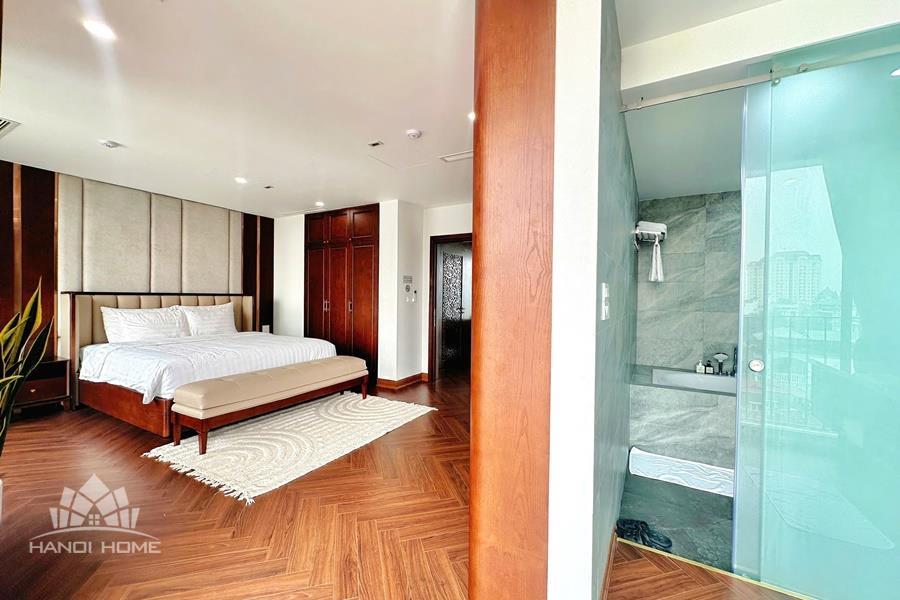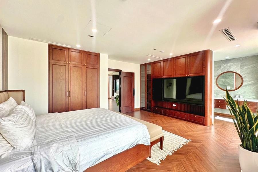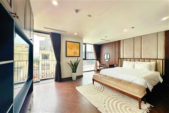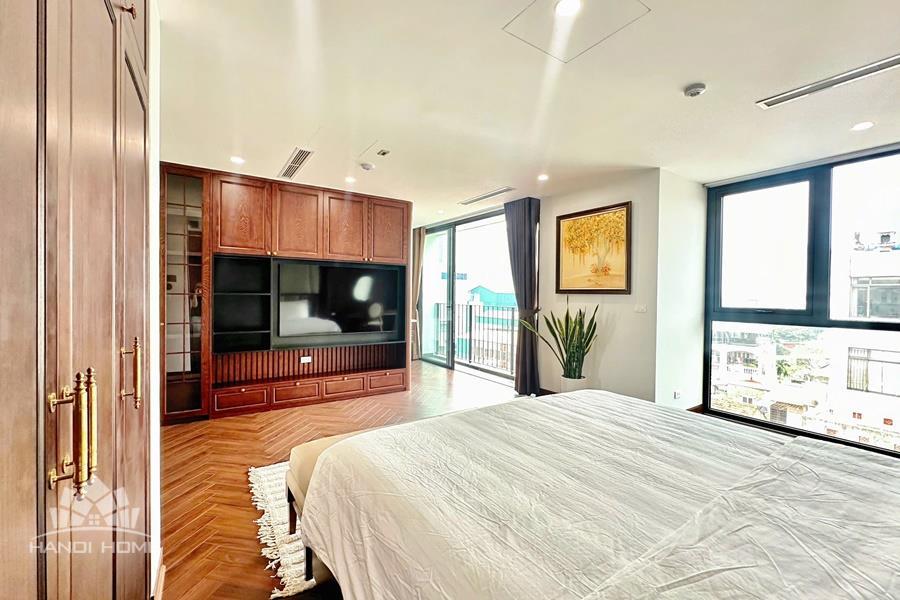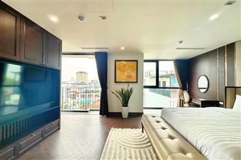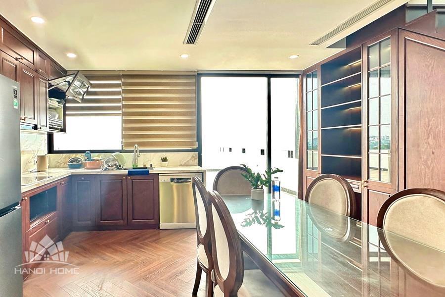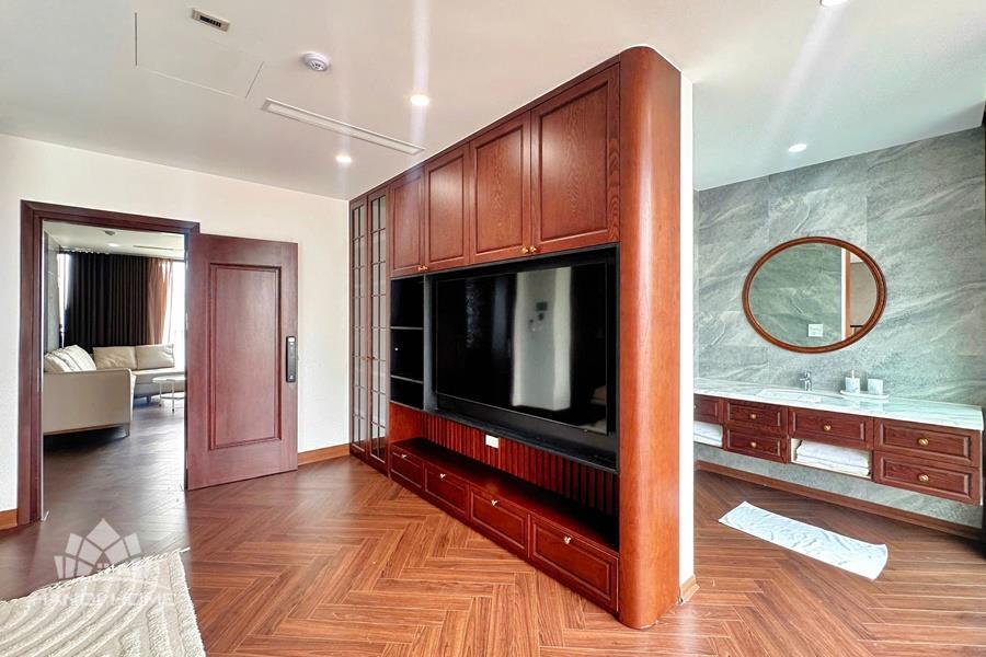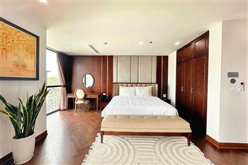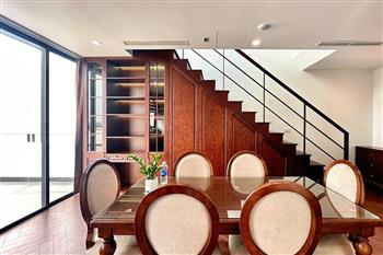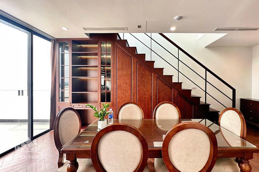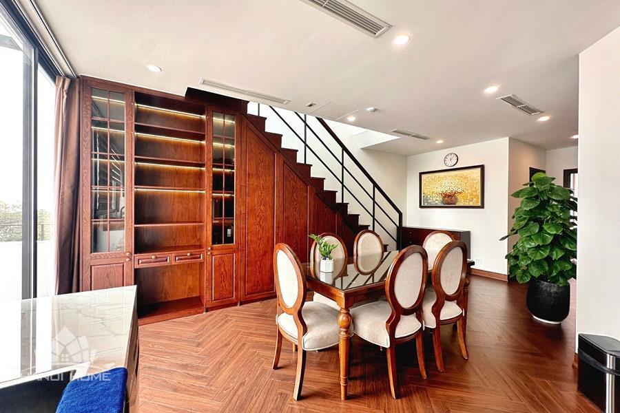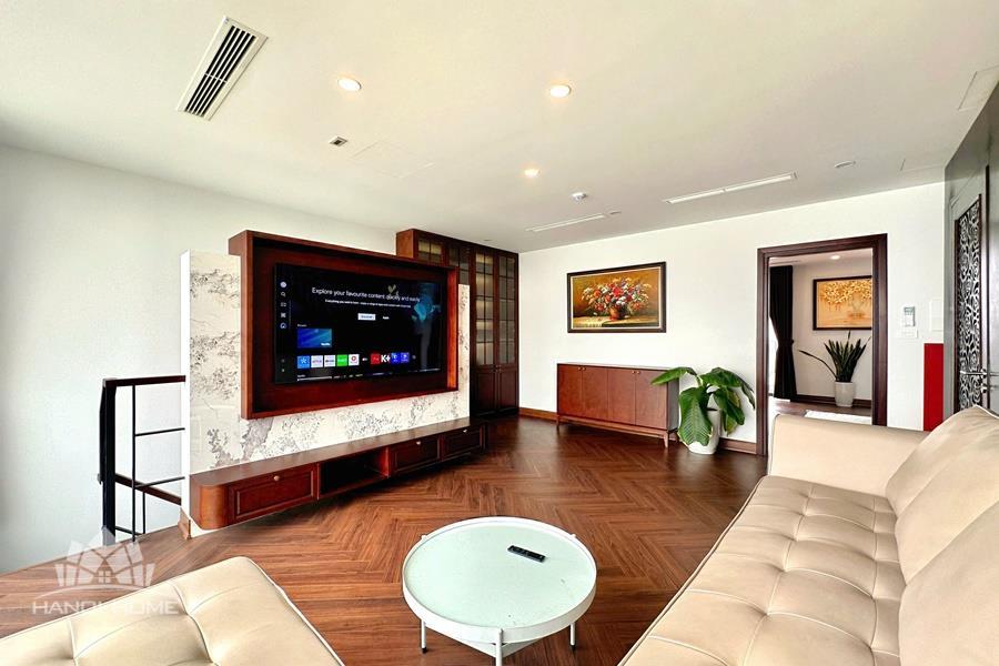 Brand-new lake-view duplex apartment in Nhat Chieu, Tay Ho, featuring 3 fully equipped bedrooms and 3 modern bathrooms. This exceptional home boasts breathtaking panoramic lake views through large windows, filling the space with natural light and a serene atmosphere. The apartment is elegantly designed with high-end, luxurious furnishings and a spacious open-plan living area, perfect for both relaxing and entertaining. The modern kitchen comes fully equipped with top-quality appliances, including a built-in oven, microwave, large refrigerator, and a dishwasher, along with ample storage. Each bedroom is bright and well-appointed with comfortable beds, wardrobes, and tasteful decor, while the bathrooms are stylishly finished with modern fixtures. This duplex offers a perfect blend of comfort, style, and functionality in one of Tay Ho’s most desirable lakefront locations.