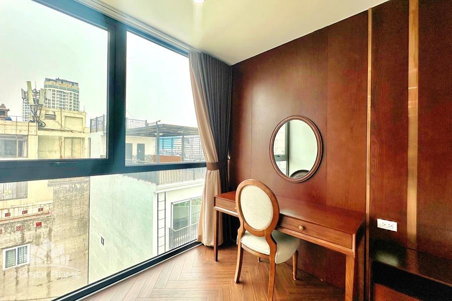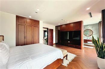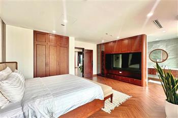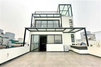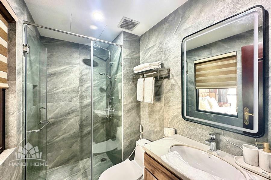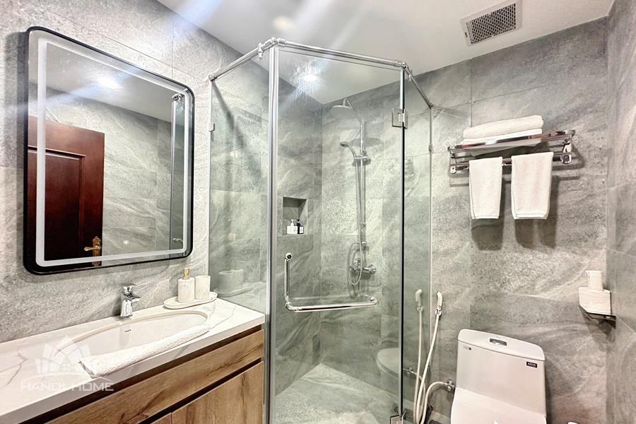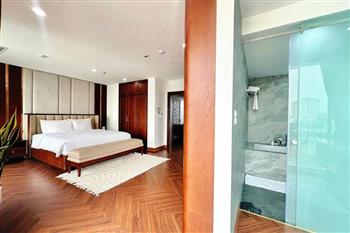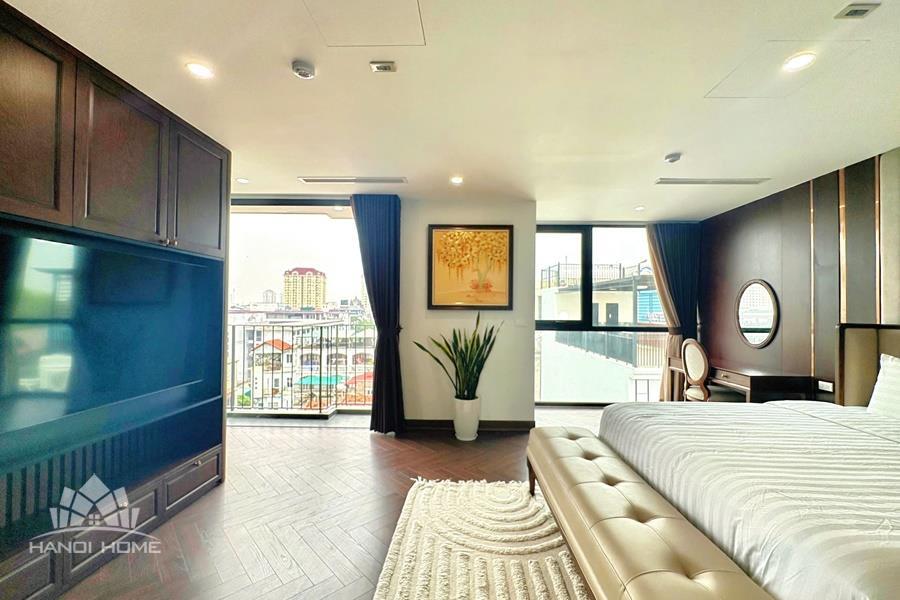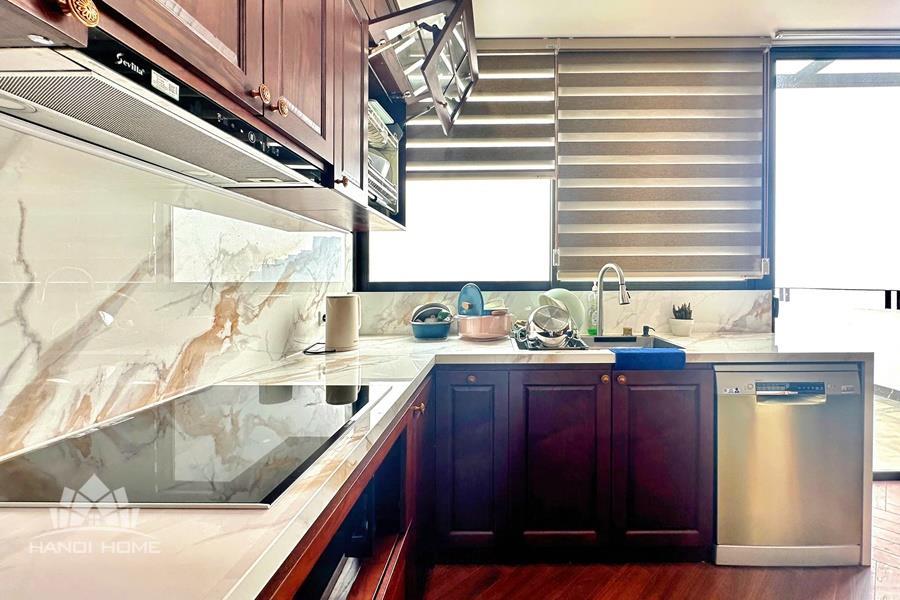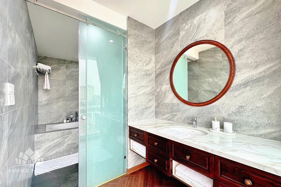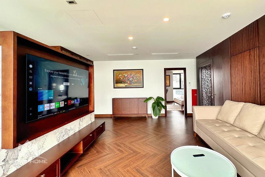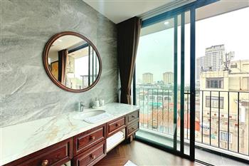 Brand-new lake-view duplex apartment in Nhat Chieu, Tay Ho, featuring 3 fully equipped bedrooms and 3 modern bathrooms. This exceptional home boasts breathtaking panoramic lake views through large windows, filling the space with natural light and a serene atmosphere. The apartment is elegantly designed with high-end, luxurious furnishings and a spacious open-plan living area, perfect for both relaxing and entertaining. The modern kitchen comes fully equipped with top-quality appliances, including a built-in oven, microwave, large refrigerator, and a dishwasher, along with ample storage. Each bedroom is bright and well-appointed with comfortable beds, wardrobes, and tasteful decor, while the bathrooms are stylishly finished with modern fixtures. This duplex offers a perfect blend of comfort, style, and functionality in one of Tay Ho’s most desirable lakefront locations.