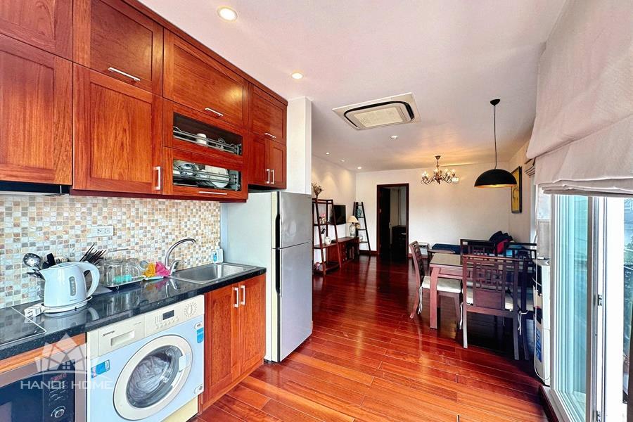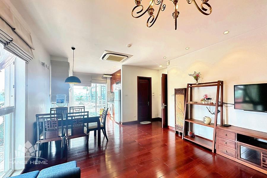 Bright 1-bedroom apartment for rent on Au Co street, Tay Ho with stunning lake view. The apartment features a modern and well-designed layout, offering 68 sqm of living space. It includes a bright living room combined with an open kitchen, one cozy bedroom, and a clean bathroom. Large windows bring in plenty of natural light and fresh air, while also offering a beautiful view of West Lake, creating a relaxing and airy atmosphere. The apartment is fully furnished with modern equipment such as a comfortable sofa, TV, dining table, bed, wardrobe, and full kitchen appliances. Located in a quiet and peaceful area, just a short walk to many restaurants, cafes, and shops... Please call us to visit.