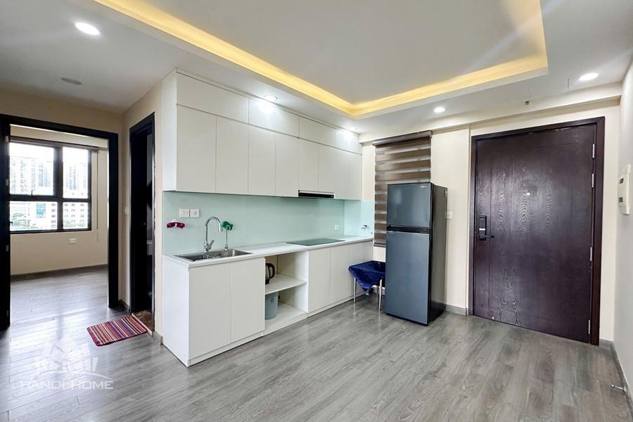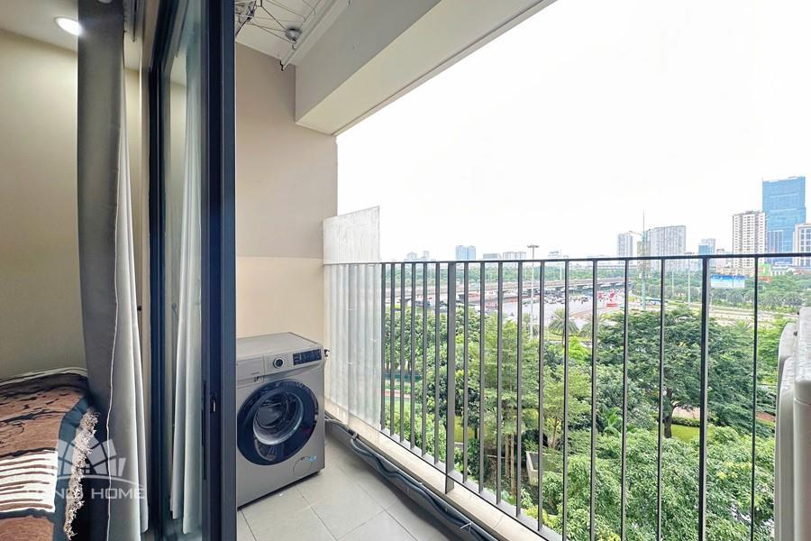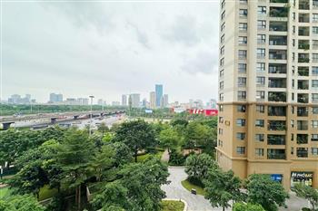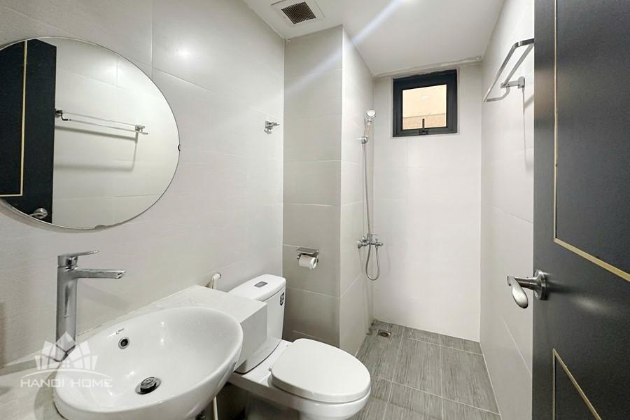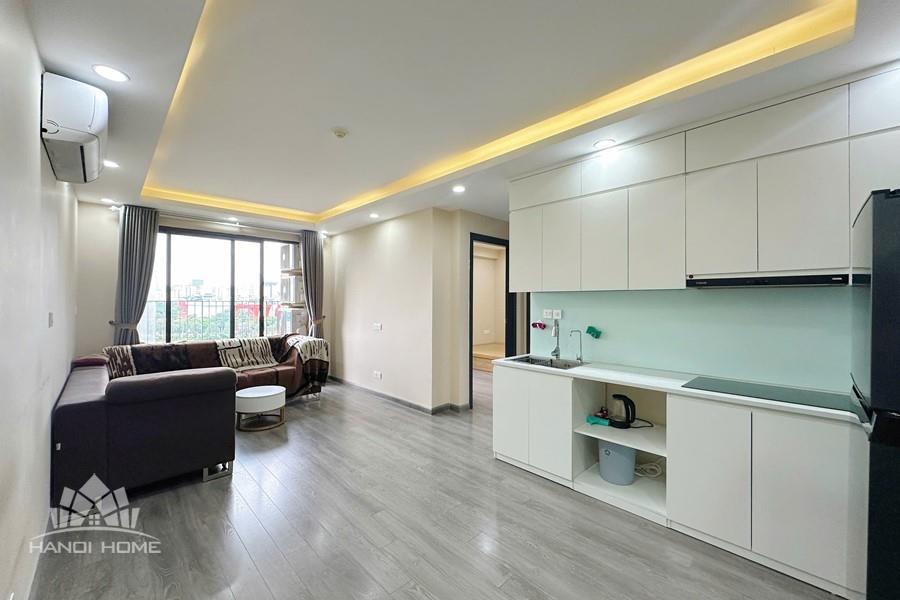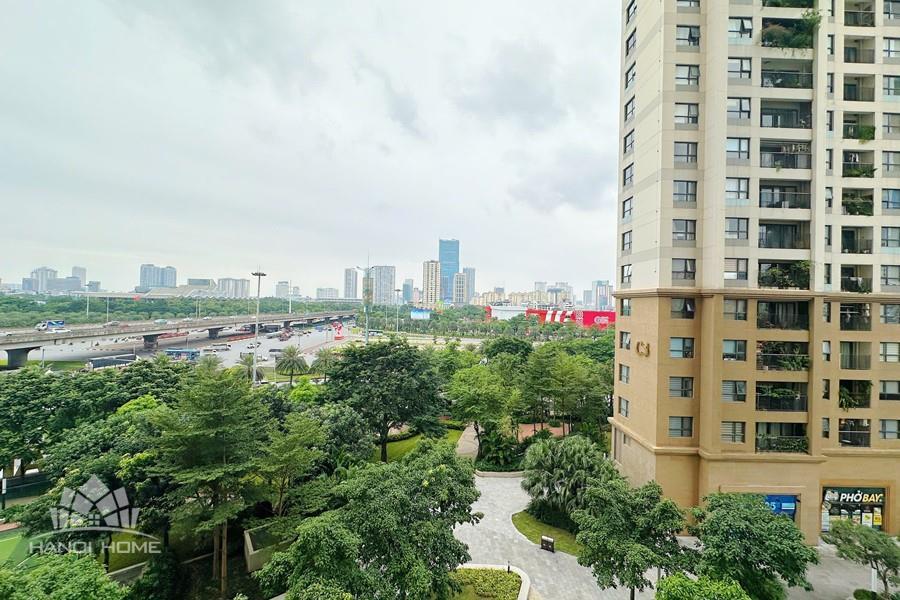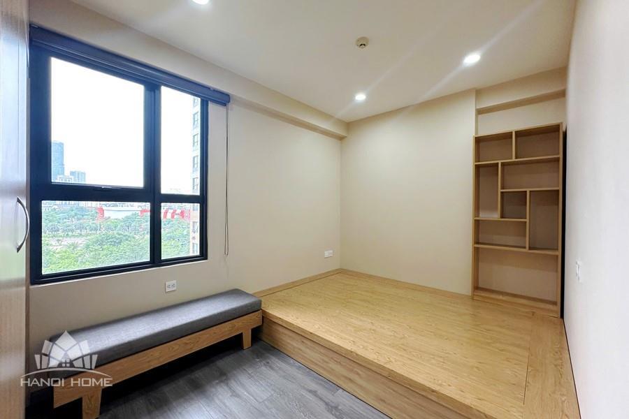 This apartment at D’Capitale is the perfect choice for those seeking a modern, comfortable living space with stunning views in the heart of Hanoi. Featuring a luxurious design that maximizes usable space while maintaining openness and elegance, the apartment is fully equipped with contemporary furnishings. Each bedroom is fitted with large windows that welcome natural light and offer vibrant city views. The flooring is finished with high-quality wood, complemented by recessed ceiling lights with warm yellow tones that create a cozy and refined atmosphere.