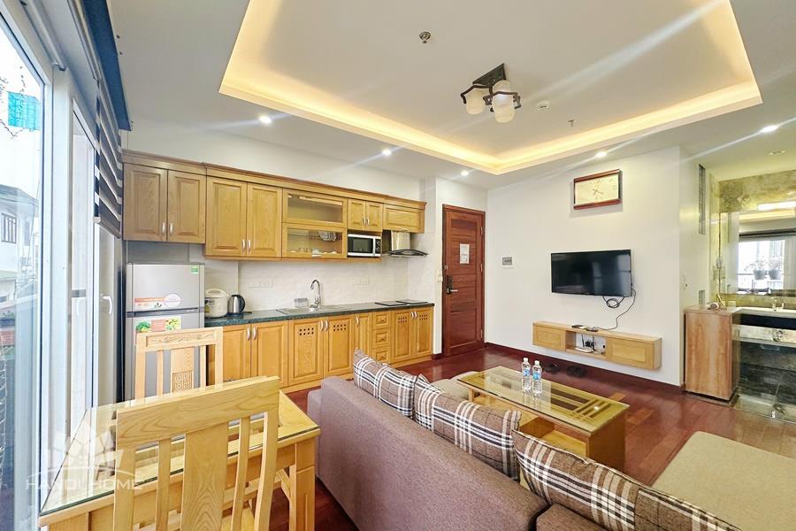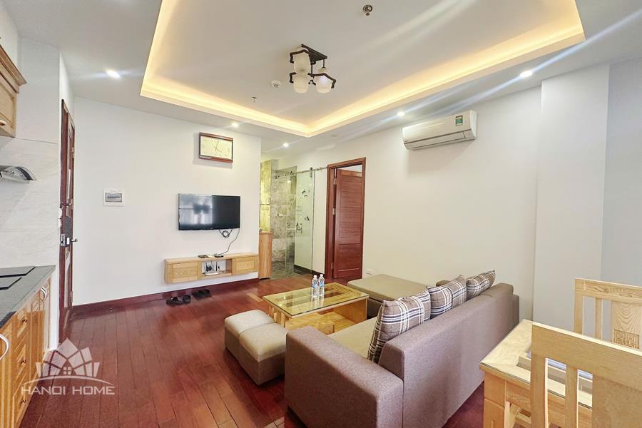 This cozy one-bedroom apartment is fully furnished with warm and tasteful interior design, creating a comfortable and welcoming living space. The living area is bright and well-arranged, featuring a sofa, dining table, and a fully equipped kitchen with modern appliances. The bedroom is quiet and relaxing, furnished with a comfortable bed, wardrobe, and plenty of storage space. Located in the vibrant Kim Ma – Ba Dinh area, the apartment is surrounded by embassies, offices, supermarkets, cafes, and restaurants, offering a lively yet convenient lifestyle. With easy access to the city center and nearby districts. Please contact Hanoi Home for free visit..