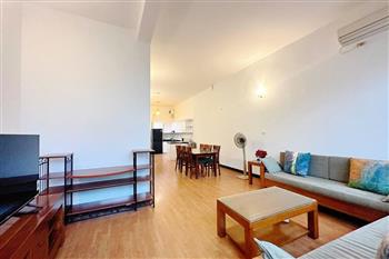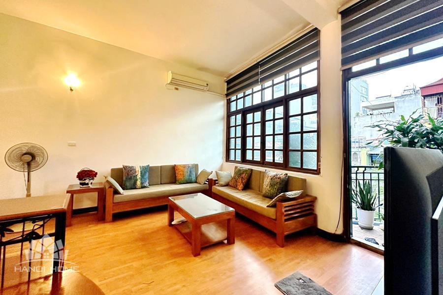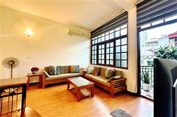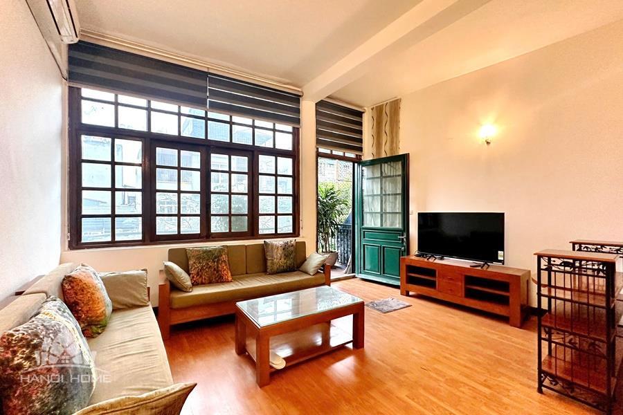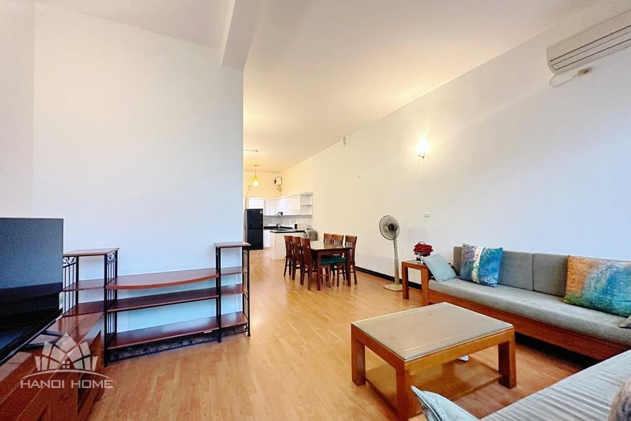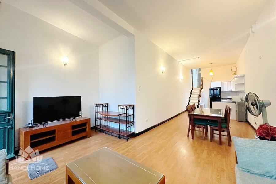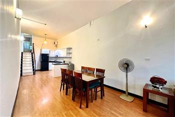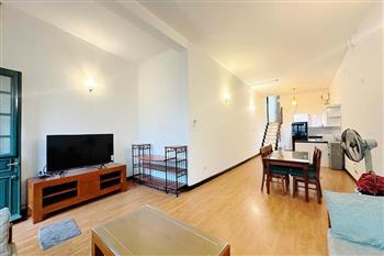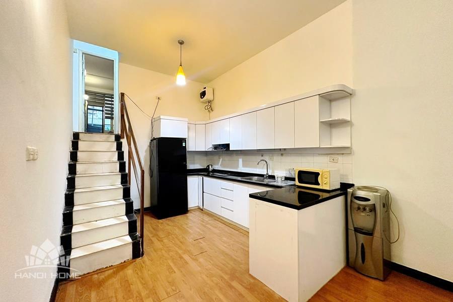 This cozy duplex apartment is designed across two levels, offering a warm and comfortable living space in the heart of the city. The living room is bright and inviting, featuring a soft-toned interior, a comfortable sofa, and large windows that allow plenty of natural light to fill the space. The open-plan kitchen and dining area are fully equipped with appliances, making it perfect for daily living or entertaining guests. Upstairs, the two bedrooms are well-sized, quiet, and designed to provide maximum comfort, with built-in wardrobes and large windows. Located on Tuệ Tĩnh Street, the apartment is in a prime central area with easy access to restaurants, cafes, shopping centers, and key locations in Hanoi, making it an ideal choice for expats or small families.