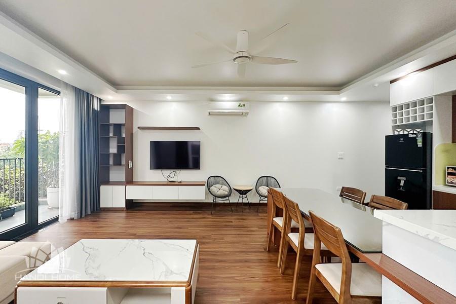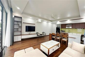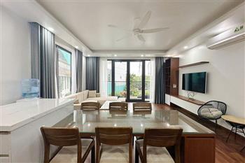 This 2 bedroom apartment in Xuan Dieu, Tay Ho offers a spacious living area of up to 145m², providing an airy and comfortable environment. Its open layout combined with high-end furnishings creates a harmonious, well-equipped, and pleasant living space. The apartment features a large balcony with greenery, where you can relax and enjoy expansive city views especially stunning at night. The apartment is fully furnished, and regular housekeeping services help maintain a clean and tidy space. Its location is extremely convenient, close to local eateries, international restaurants, lakeside cafés, and mini-marts. With easy access to central districts and nearby amenities, this is an ideal choice for those seeking a home that offers both modern comfort and a serene lifestyle in the heart of Tay Ho.