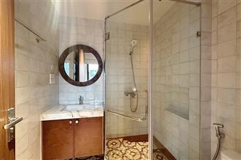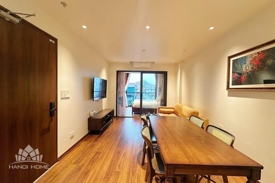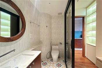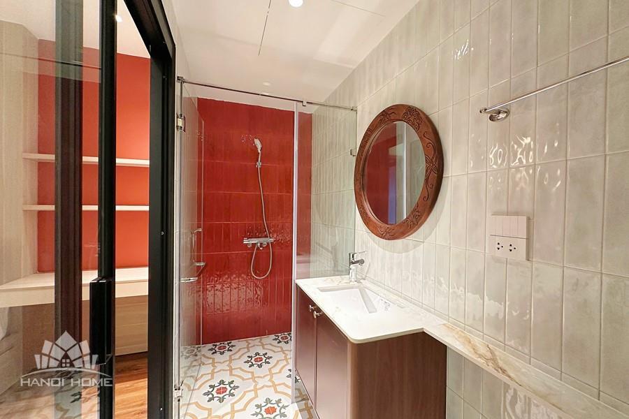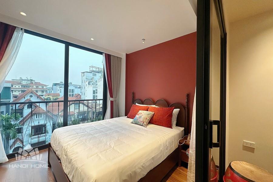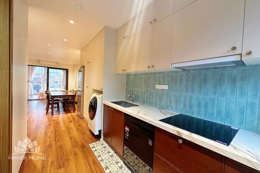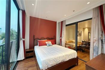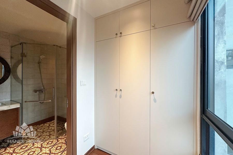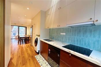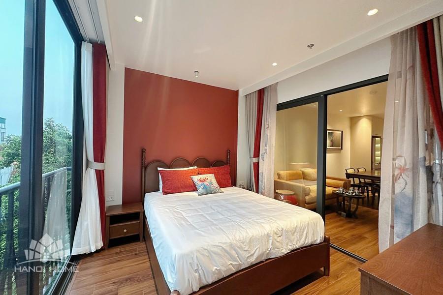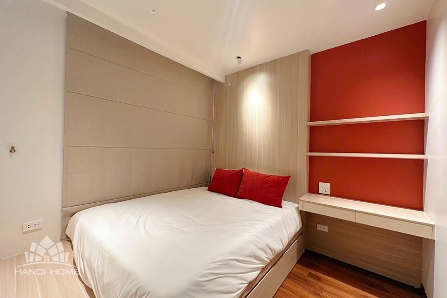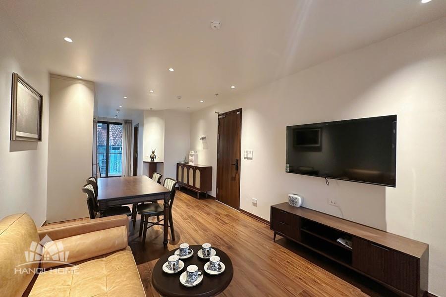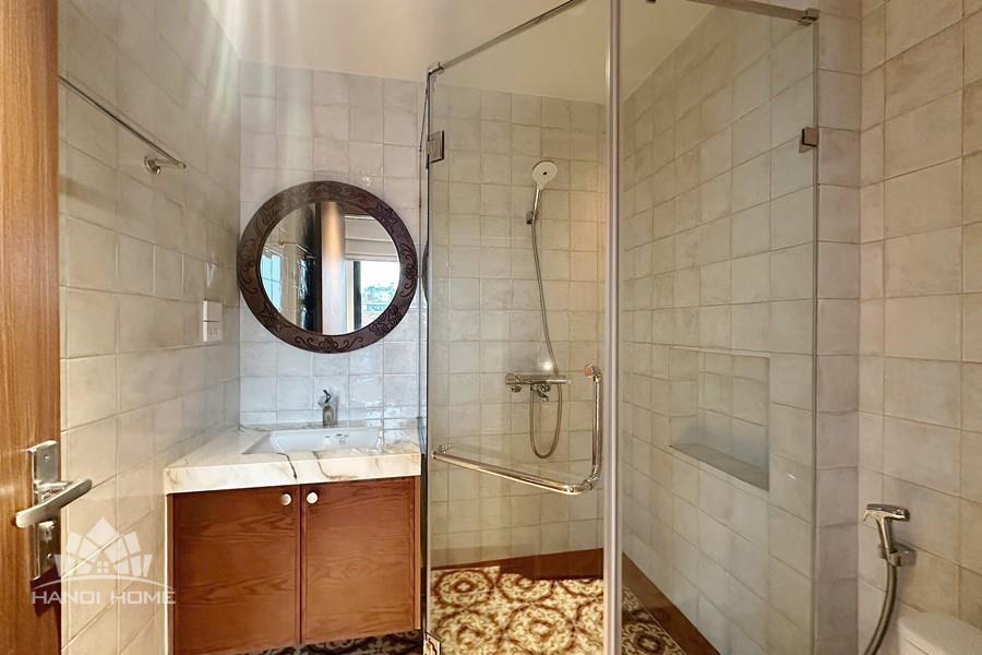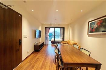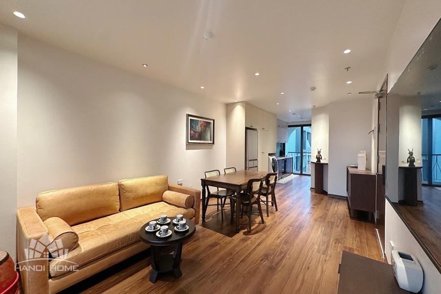 The 2-bedroom apartment on To Ngoc Van Street, Tay Ho exudes a captivating classical charm, creating a warm and elegant living space in the heart of Hanoi. Nestled on a quiet street near the poetic West Lake, the apartment enjoys an ideal location while offering a sense of tranquility and closeness to nature. Its interior design features natural wood materials and warm tones, harmoniously combined with abundant natural light from large windows, ensuring the space remains bright and airy. The living room is tastefully arranged with a cozy sofa, wooden coffee table, TV cabinet, and decorative elements that evoke a nostalgic ambiance. With a harmonious blend of classical aesthetics and modern comforts, this apartment is a perfect choice for those seeking a refined yet cozy home in the Tây Hồ area.