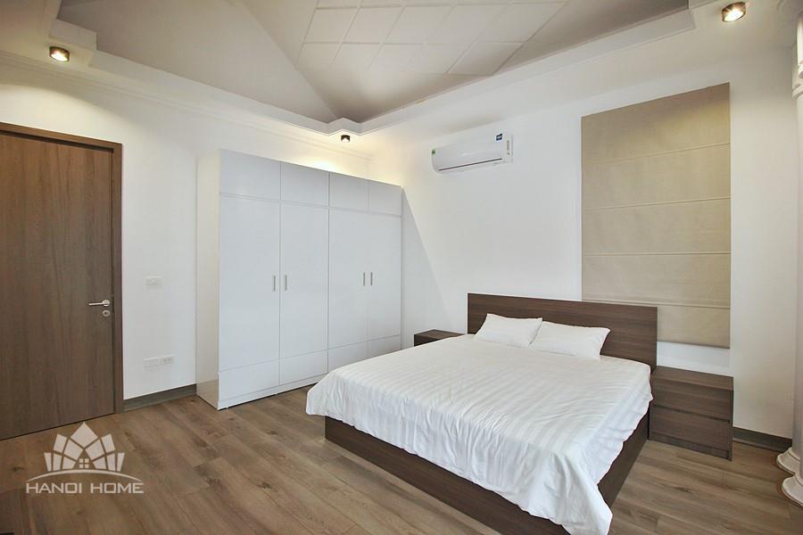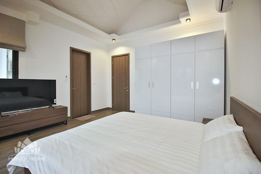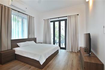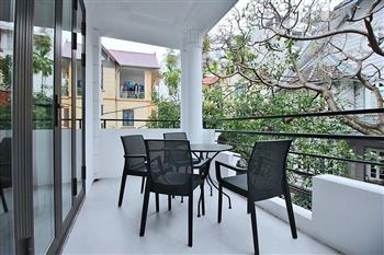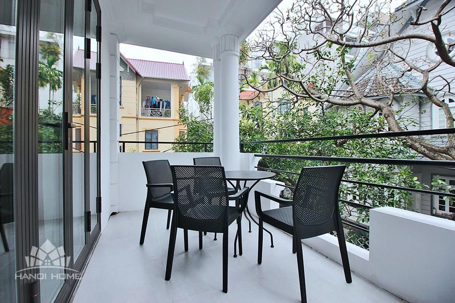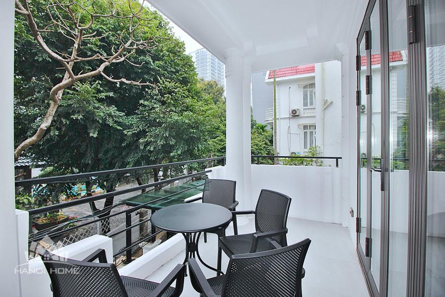 Outdoor spaces such as balconies and terraces are furnished for relaxation, offering views of nearby trees and neighboring architecture. Situated in a quiet, tree-lined neighborhood near West Lake, the villa is within walking distance of international schools, cafes, and restaurants, making it a perfect blend of tranquility and convenience.