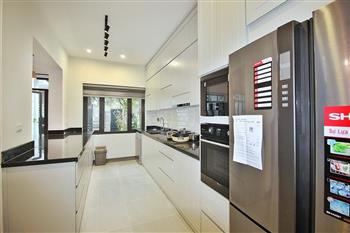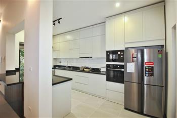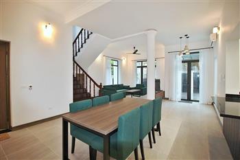 This luxurious 4-bedroom villa located on Tô Ngọc Vân Street in Tây Hồ offers an exceptional living experience in the heart of Hanoi. Designed with an open-concept layout, the villa provides a spacious and airy atmosphere throughout. Floor-to-ceiling glass doors and windows invite abundant natural light into every corner, enhancing the sense of openness and connection to the surrounding greenery.