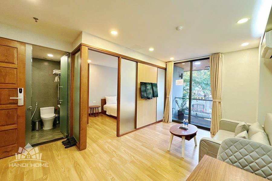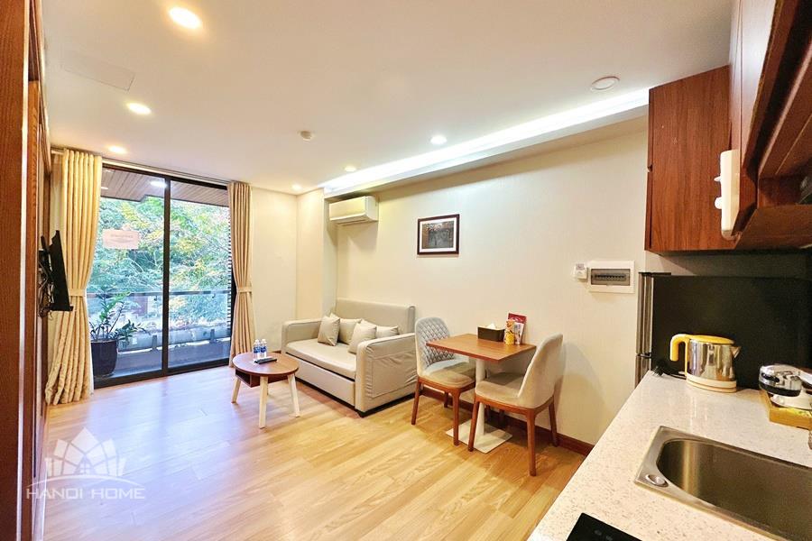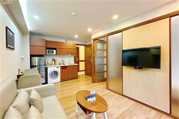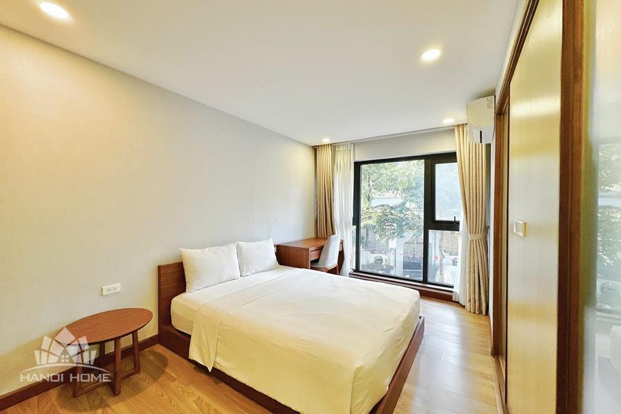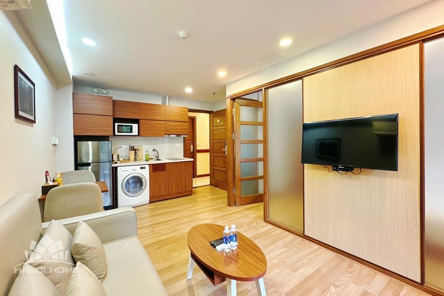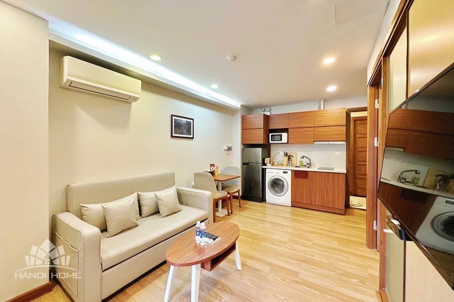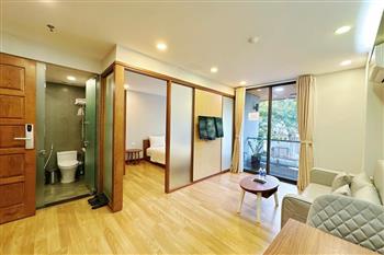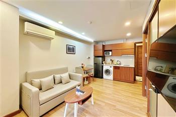 This cozy 1-bedroom serviced apartment for rent in Trich Sai, Tay Ho near West Lake. The apartment is fully furnished with modern furniture and tasteful décor. A bright living area connects seamlessly with a well-equipped kitchen, creating a warm and functional layout. The bedroom is quiet and relaxing, designed for restful sleep. Large windows bring in natural light and fresh air throughout the apartment. The bathroom is clean and modern with quality fittings. Professional serviced-apartment management includes regular housekeeping and maintenance. Located in a peaceful neighborhood, the apartment is just steps away from West Lake, cafés, and restaurants.