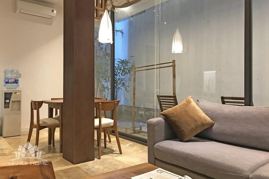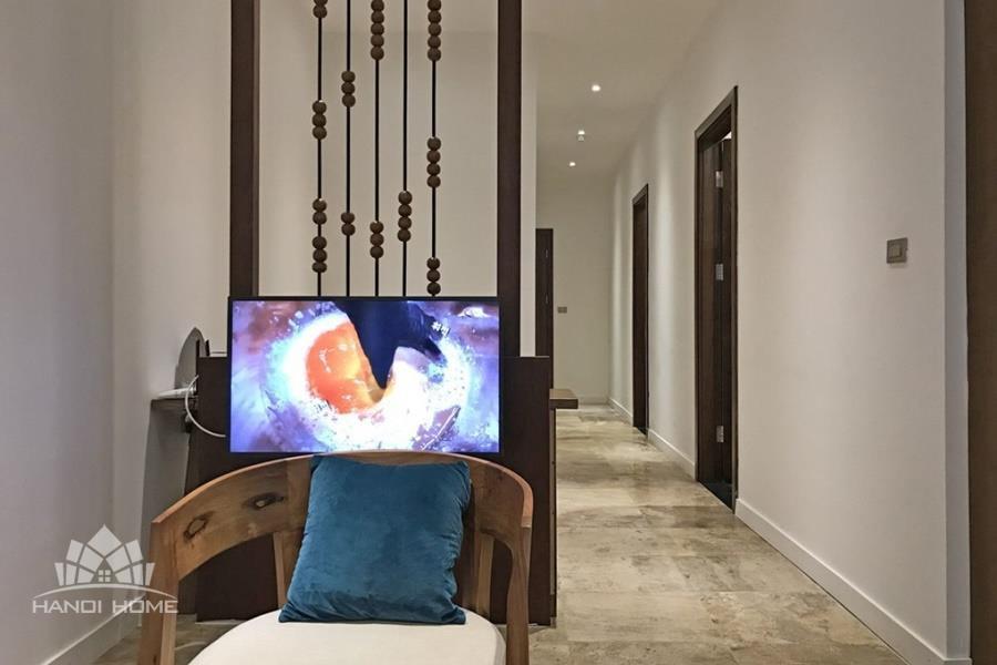 This charming apartment offers a warm and comfortable living space in the peaceful neighborhood of Xom Chua, Tay Ho. Designed with a cozy and inviting atmosphere, the apartment features a cozy living room with comfortable furnishings.
