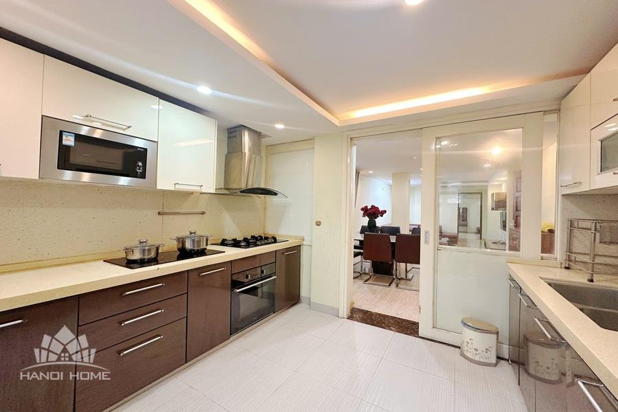 This 3-bedroom apartment is located in Giang Vo, Ba Dinh, one of the most vibrant and convenient central areas of Hanoi. With a total area of 126m², including 3 bedrooms and 2 bathrooms, the apartment offers a spacious and airy living environment, ideal for families or expatriates seeking comfort and privacy. It comes fully furnished and ready for immediate move-in. Situated in a secure and quiet residential neighborhood, the apartment is close to Giang Vo Lake, international schools, shopping centers, and various other amenities. A perfect choice for modern living in the heart of Hanoi.