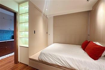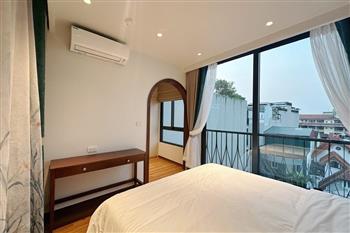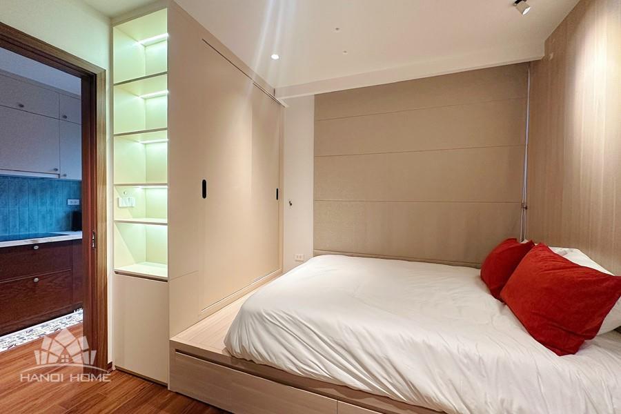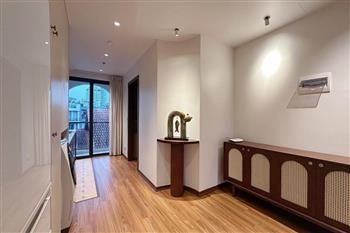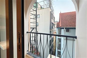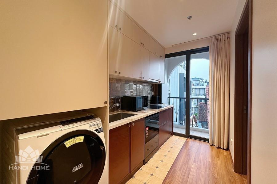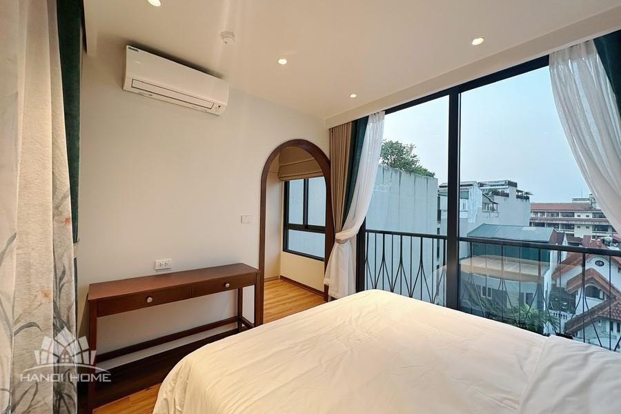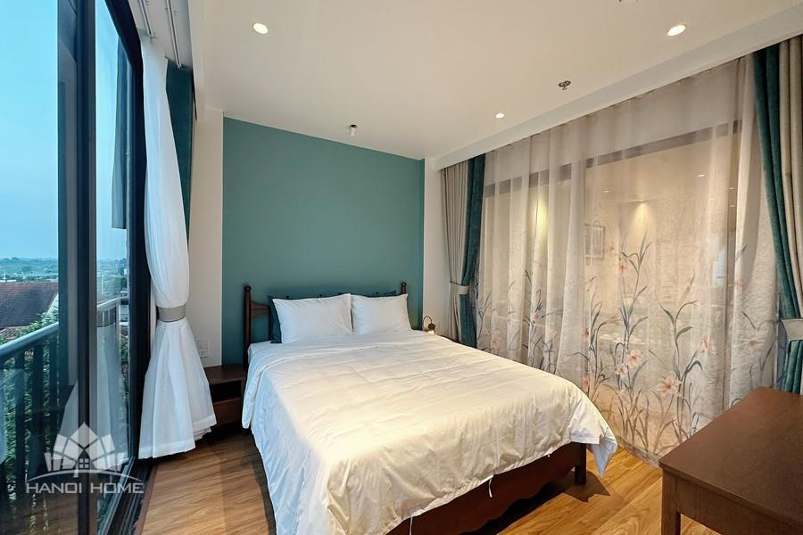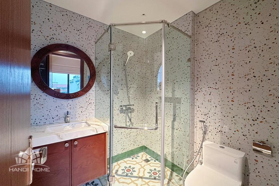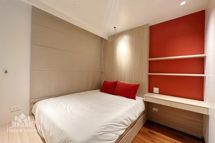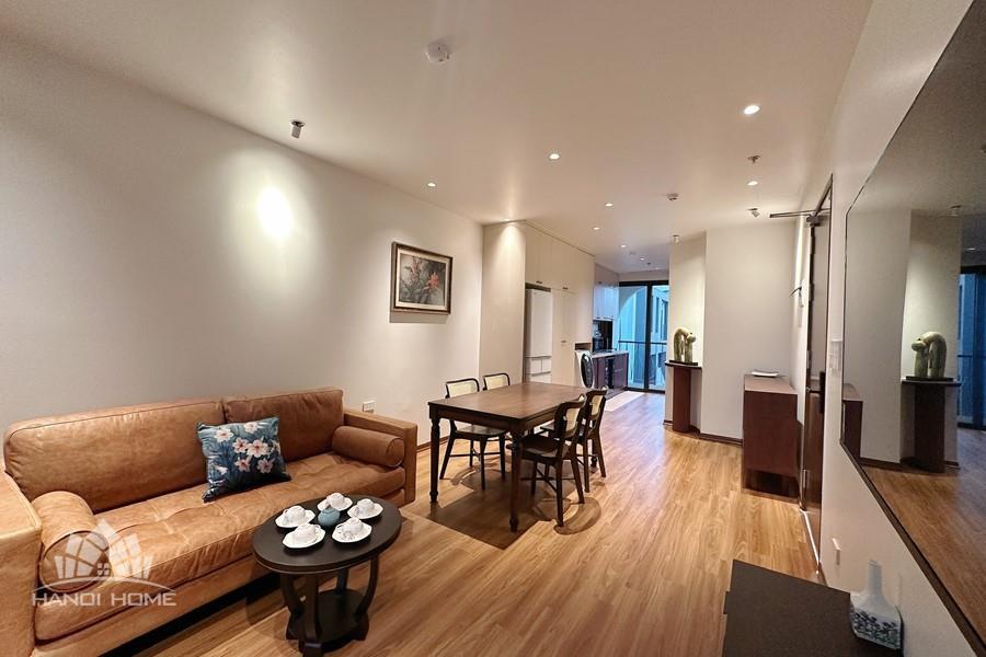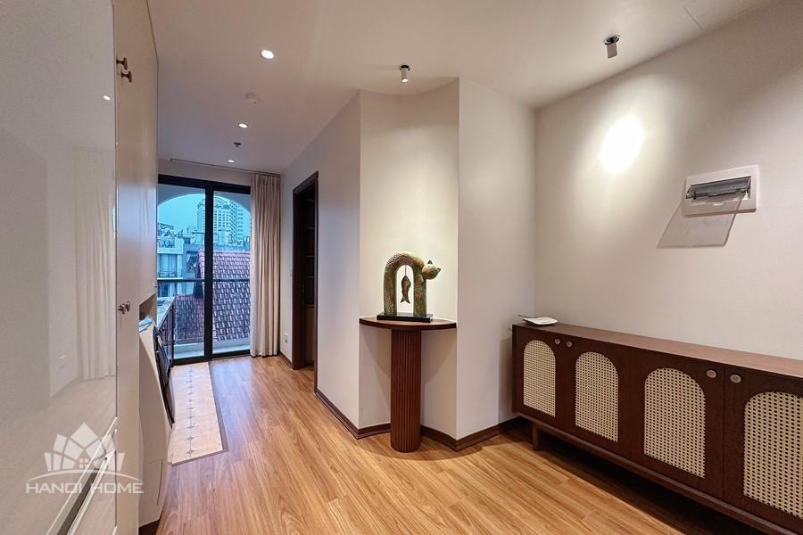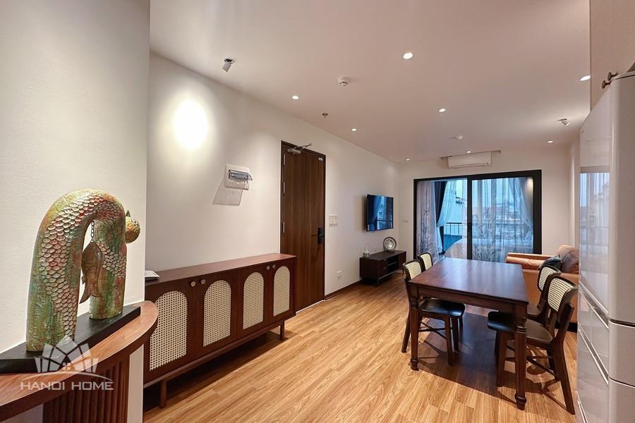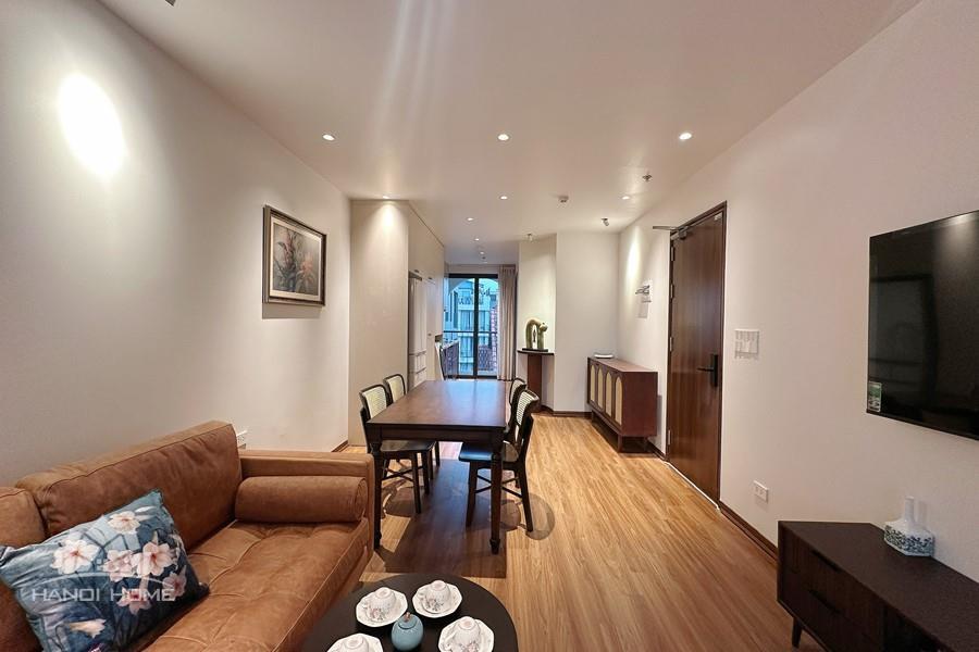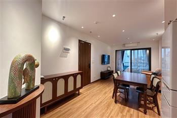 This two-bedroom apartment on To Ngoc Van Street, Tay Ho, features a modern design with warm, inviting touches. The layout is thoughtfully arranged to maximize natural light, creating a bright and airy atmosphere throughout. Living spaces are seamlessly connected, offering both comfort and functionality for daily life. A small balcony overlooks a charming alleyway, where traditional and contemporary architecture meet adding a unique character to the home. This apartment is an ideal choice for those seeking tranquility, convenience, and a refined lifestyle in the heart of Hanoi.