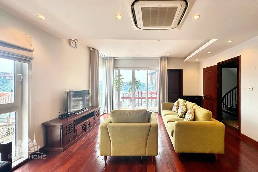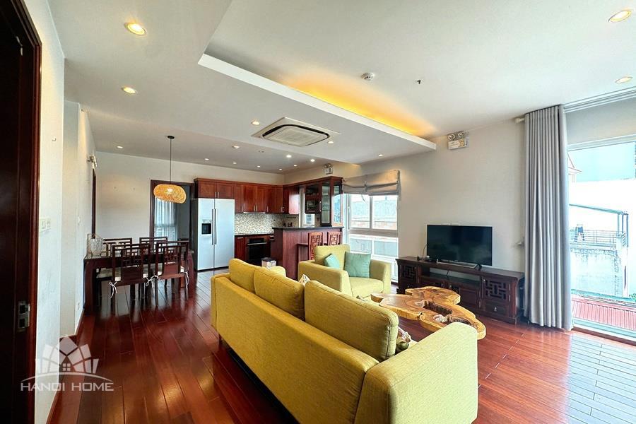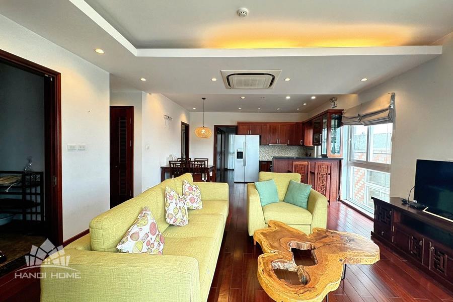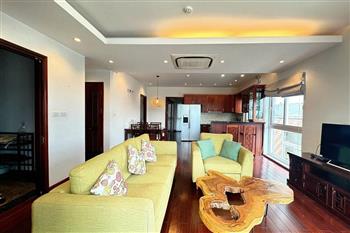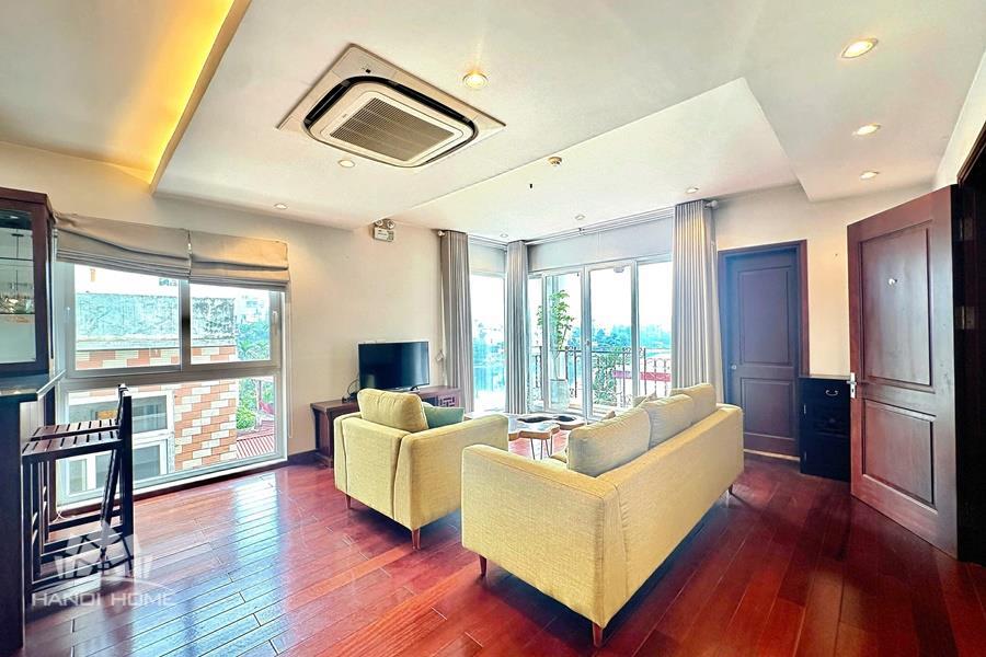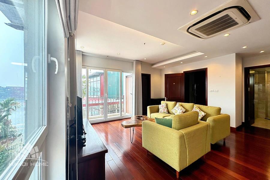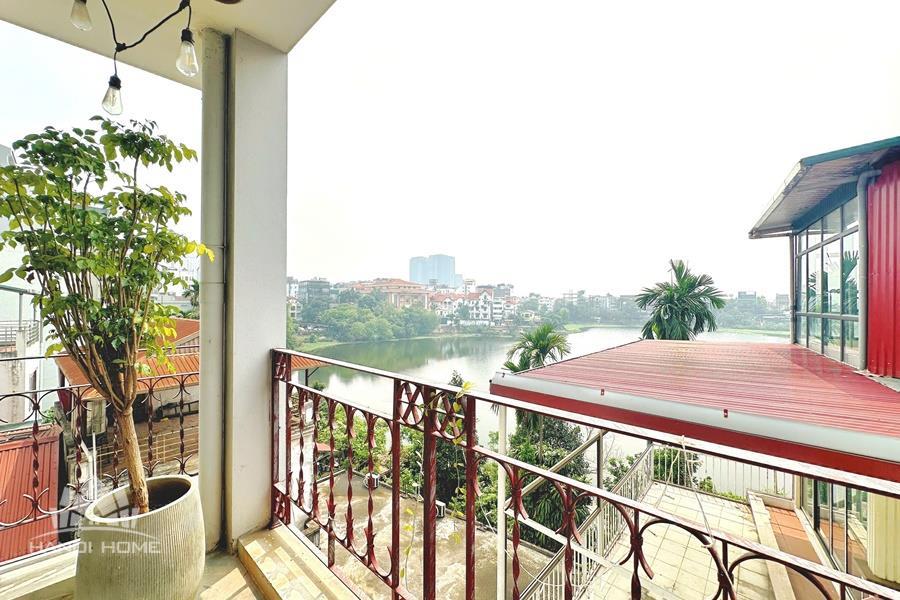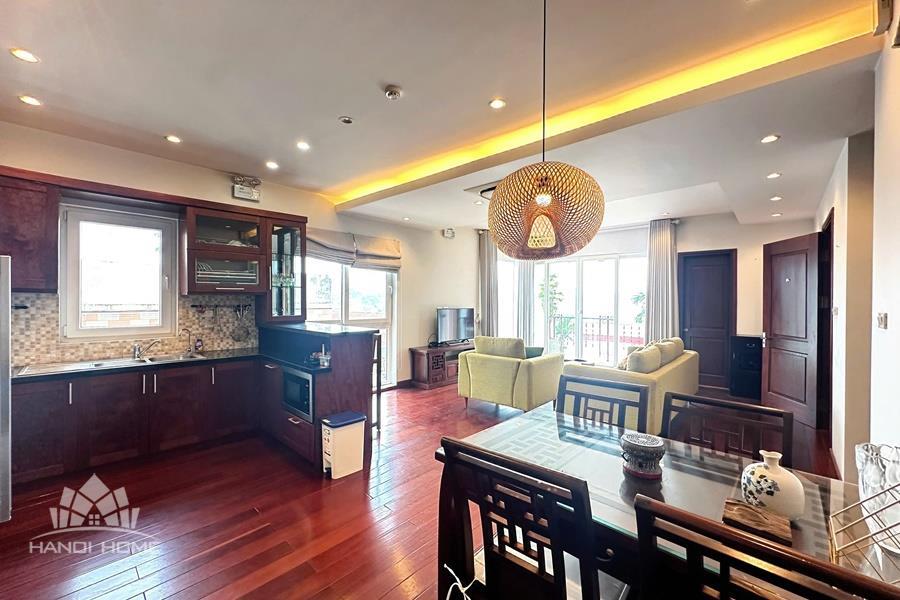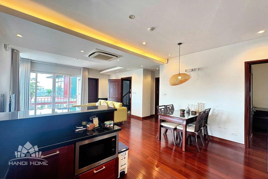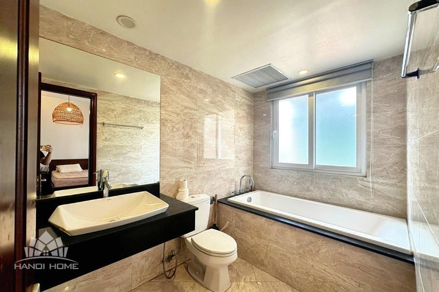 Cozy 2-bedroom apartment for rent on Au Co street, Tay Ho with lake view. This bright and well-maintained apartment offers a comfortable living space with a smart layout, featuring a spacious living room connected to an open kitchen, two cozy bedrooms, and modern bathrooms. Thanks to large windows and a private balcony, the apartment is filled with natural light and enjoys a refreshing breeze along with a stunning view of West Lake. The property comes fully furnished with good-quality furniture and equipment, including a comfortable sofa, TV, dining set, beds, wardrobes, and a fully equipped kitchen—ready for immediate move-in. Located on Au Co street in a peaceful neighborhood of Tay Ho, the apartment provides easy access to West Lake, nearby cafes, restaurants, and daily amenities.