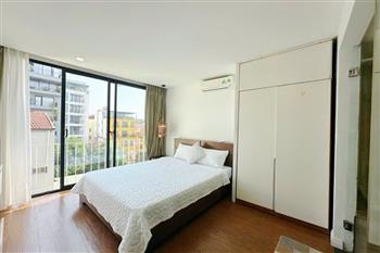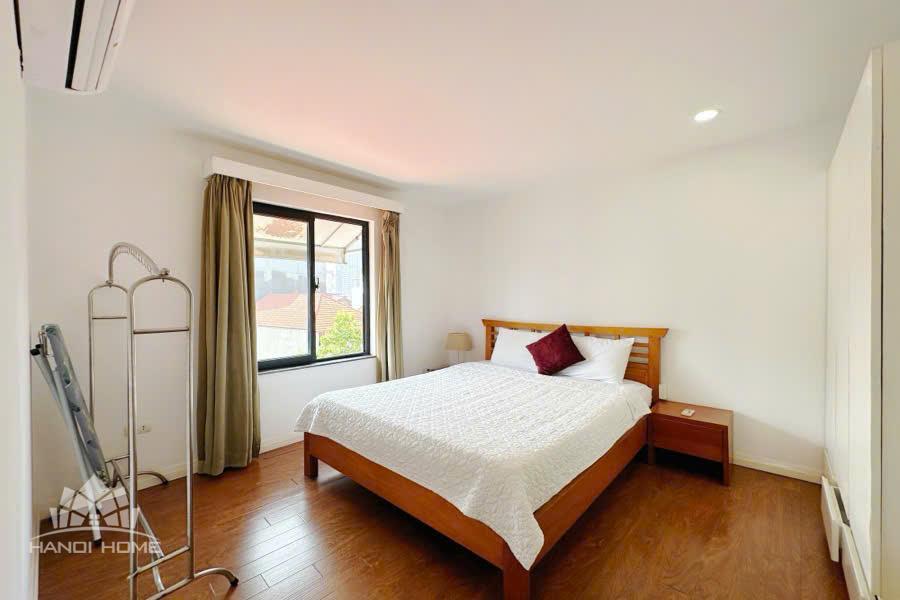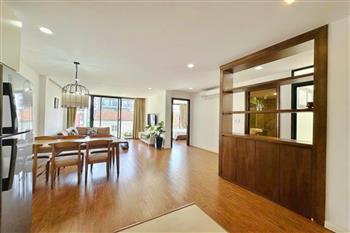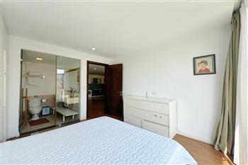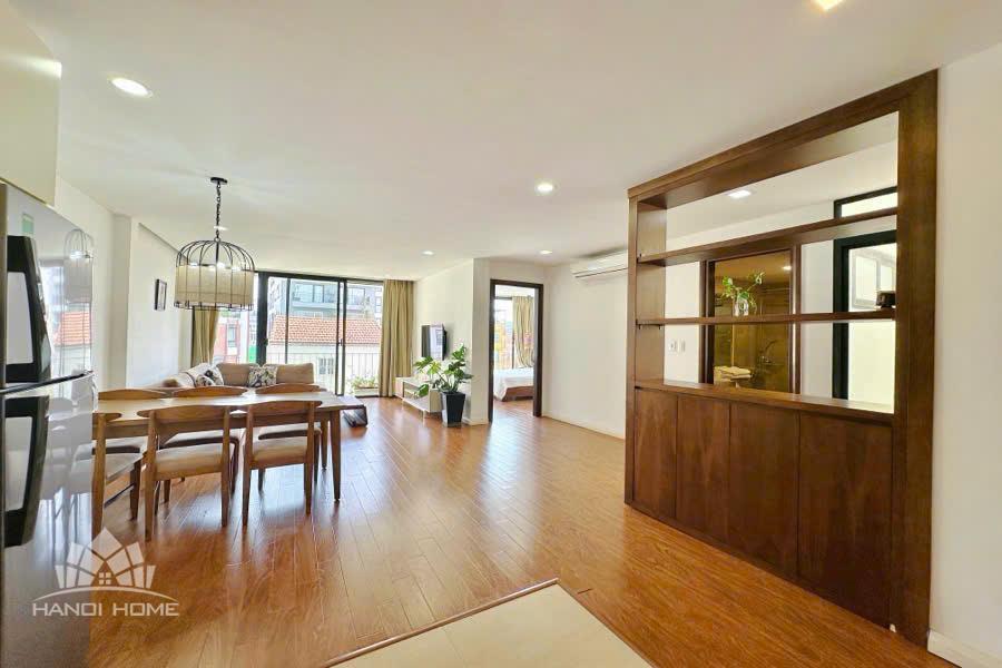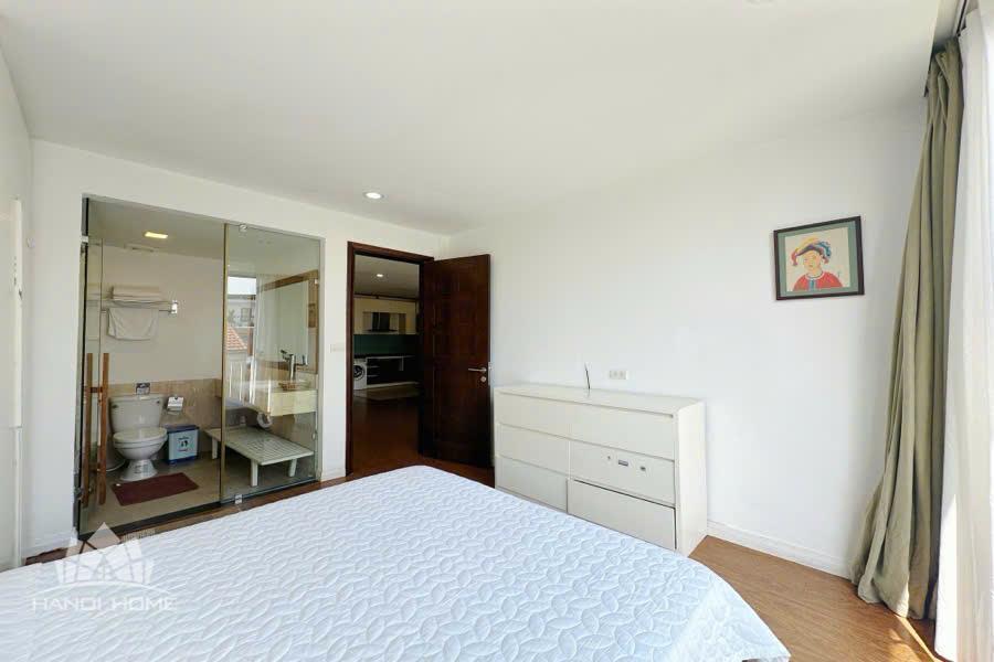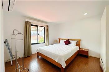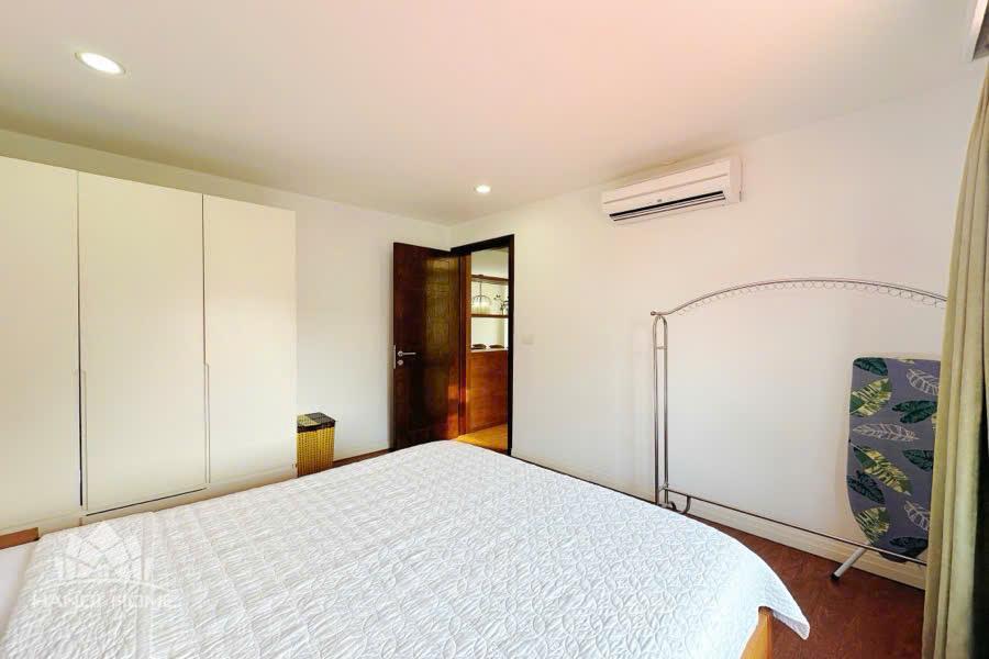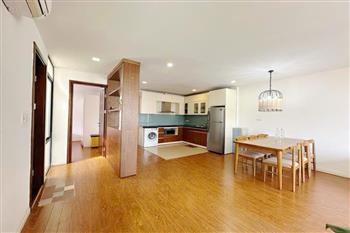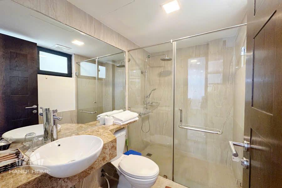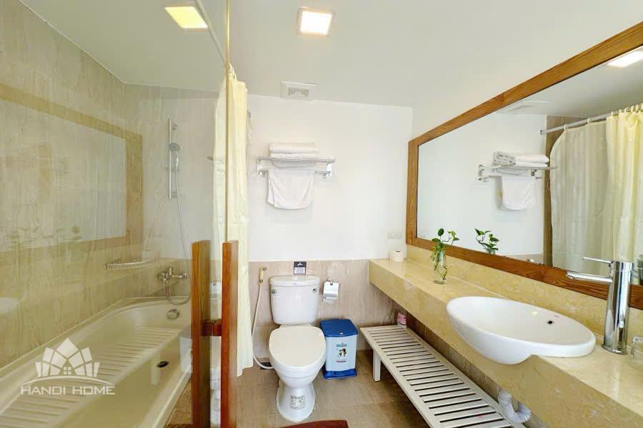 The kitchen area is neatly arranged and comes fully equipped with modern appliances. Both bedrooms are spacious and bright, furnished with a sturdy wooden double bed, large wardrobes, and two-way air conditioners. The master bedroom stands out with its large window, ensuring quality sleep and an open view. The bathroom is clad in light-colored stone and fitted with high-end fixtures. This apartment is ready for you to move in immediately. It is the perfect choice for anyone seeking a convenient and stylish living space in the Tay Ho area.