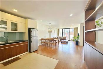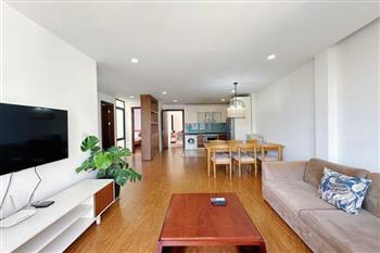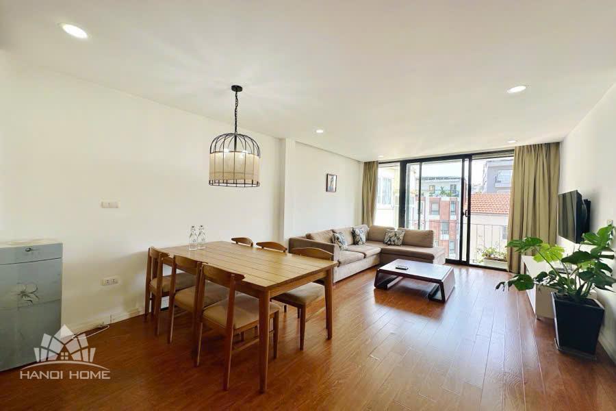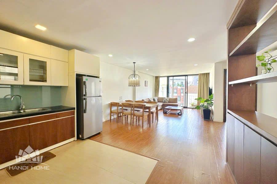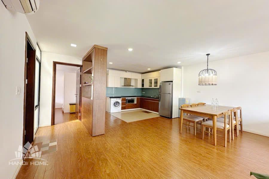 This modern apartment is ideally located on To Ngoc Van street, Tay Ho, a famously peaceful and secure area favored by the expat community, and just a few steps away from West Lake. Featuring an open and airy design, the apartment maximizes natural light and a sense of spaciousness. The entire space boasts warm hardwood flooring and sophisticated white walls, creating an overall elegant and comfortable ambiance.
