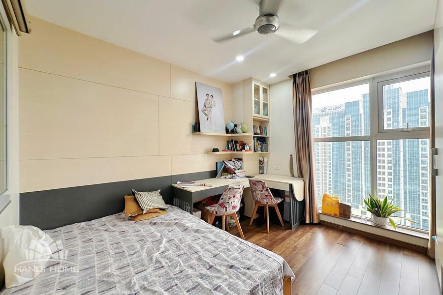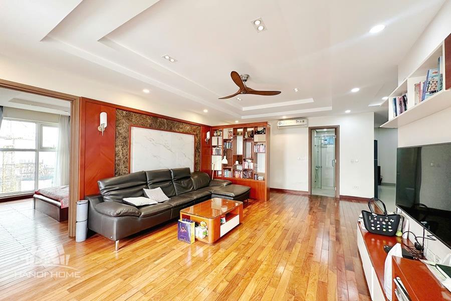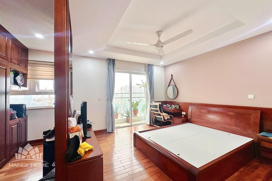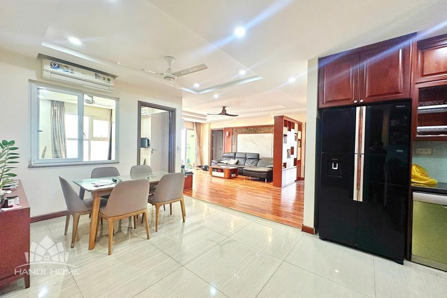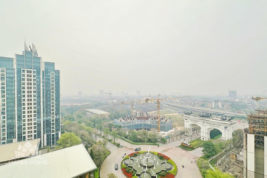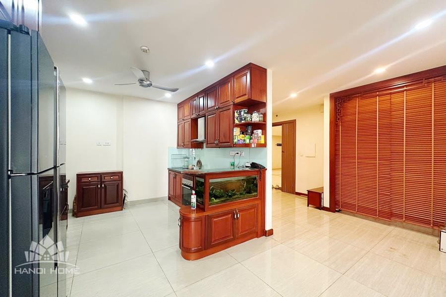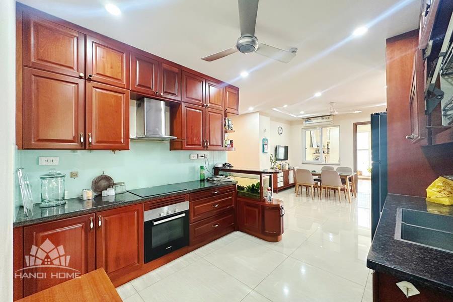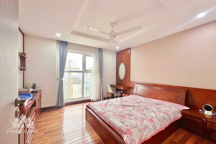 This elegant and cozy apartment offers a comfortable living space in the prestigious Ciputra Hanoi area. The apartment features 3 well-sized bedrooms and modern bathrooms, making it an ideal home for families or professionals. The living room is warm and inviting, designed with tasteful furniture and large windows that bring in plenty of natural light. From the living area and balcony, residents can enjoy a beautiful city view, especially stunning in the evening. The kitchen is fully equipped with essential appliances, cabinets, and a dining area, providing convenience for daily cooking. Located in the peaceful and green Ciputra community, the apartment offers a quiet living environment while still being close to international schools, restaurants, supermarkets, and other amenities.
