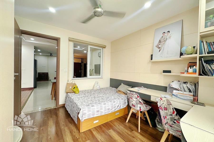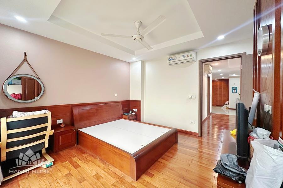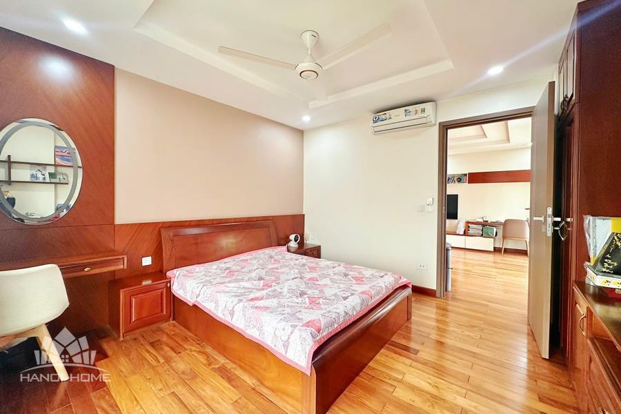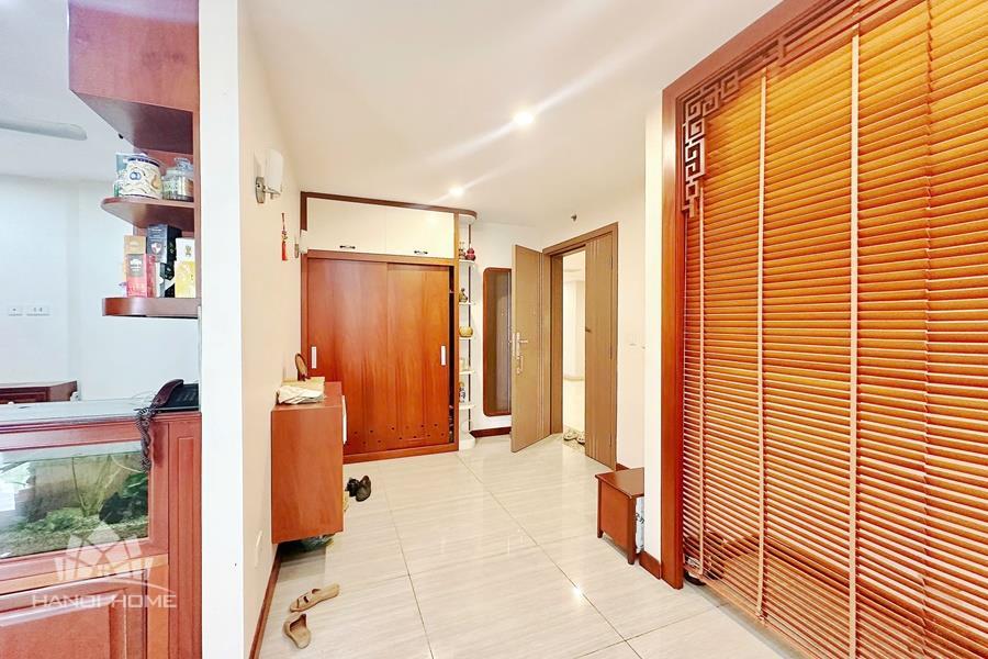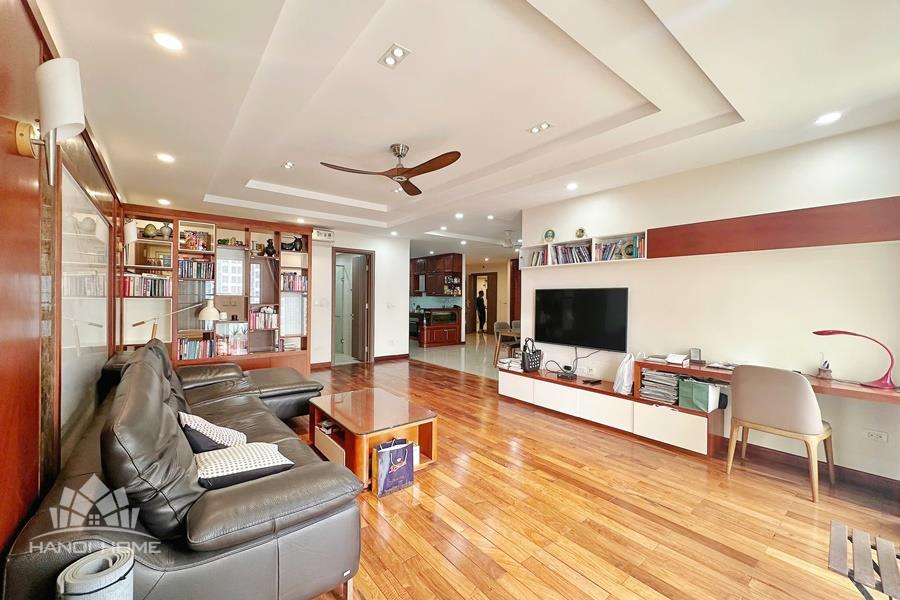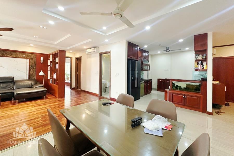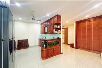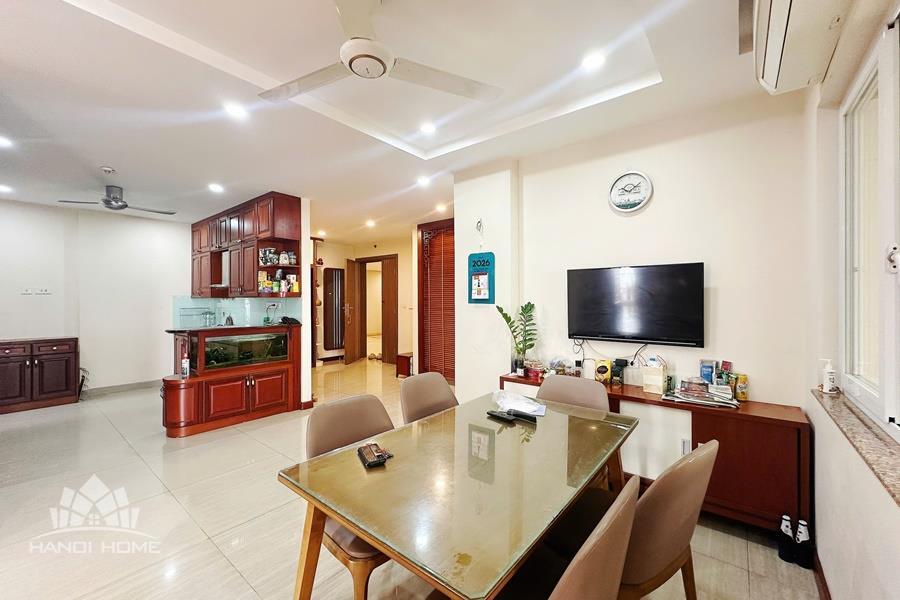 This elegant and cozy apartment offers a comfortable living space in the prestigious Ciputra Hanoi area. The apartment features 3 well-sized bedrooms and modern bathrooms, making it an ideal home for families or professionals. The living room is warm and inviting, designed with tasteful furniture and large windows that bring in plenty of natural light. From the living area and balcony, residents can enjoy a beautiful city view, especially stunning in the evening. The kitchen is fully equipped with essential appliances, cabinets, and a dining area, providing convenience for daily cooking. Located in the peaceful and green Ciputra community, the apartment offers a quiet living environment while still being close to international schools, restaurants, supermarkets, and other amenities.