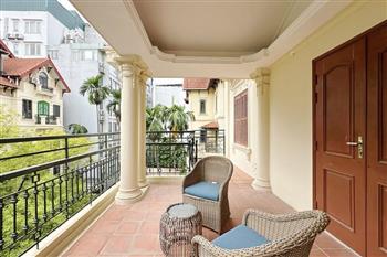 Located on the prestigious To Ngoc Van street, this house is an icon of luxury with its striking Classical European architecture. The façade is magnificent, featuring large, intricately carved columns, a spacious courtyard paved with traditional terracotta tiles, and an airy balcony overlooking the leafy neighborhood.