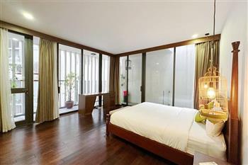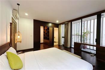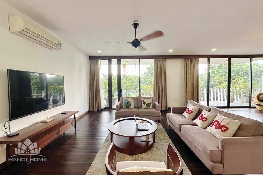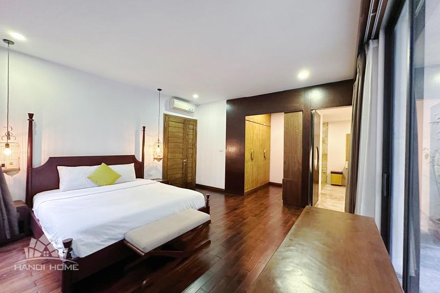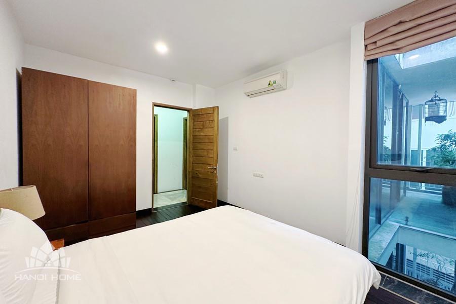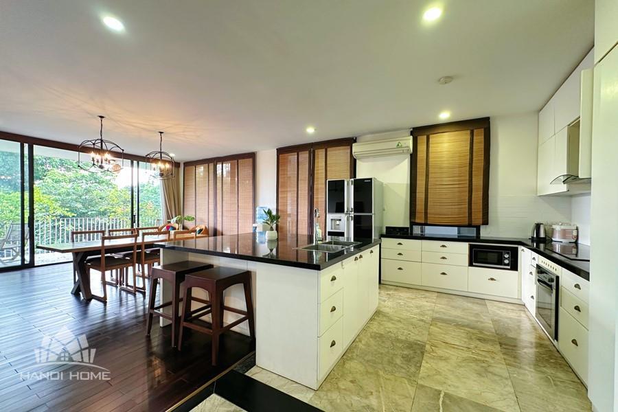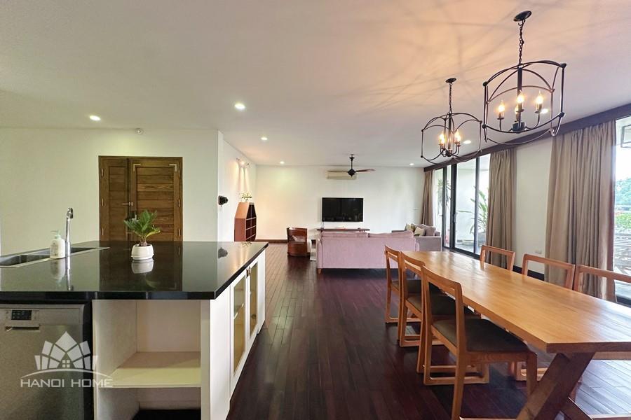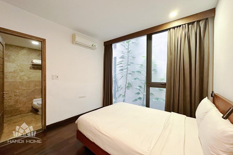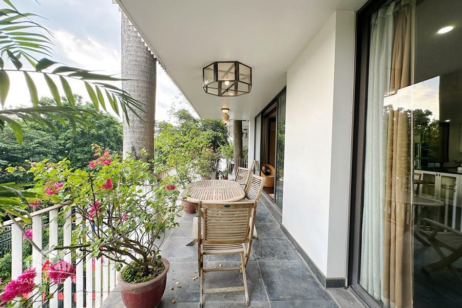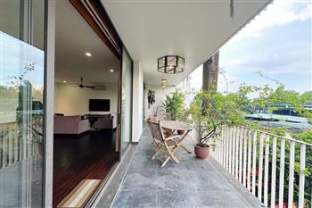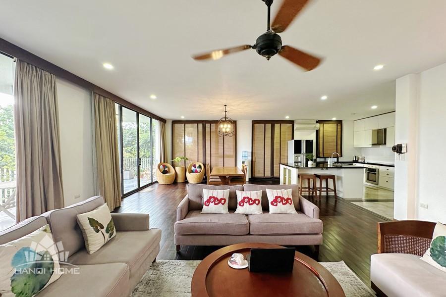 Three-bedroom Japanese-style apartment in Xóm Chùa, Tây Hồ. Located in a quiet residential area just steps from West Lake, this spacious apartment combines minimalist Japanese aesthetics with modern elegance. The interior features clean lines, natural materials, and a neutral color palette that creates a harmonious and calming atmosphere. Large glass windows throughout the apartment allow abundant natural light to flood the space and offer scenic views of surrounding greenery.