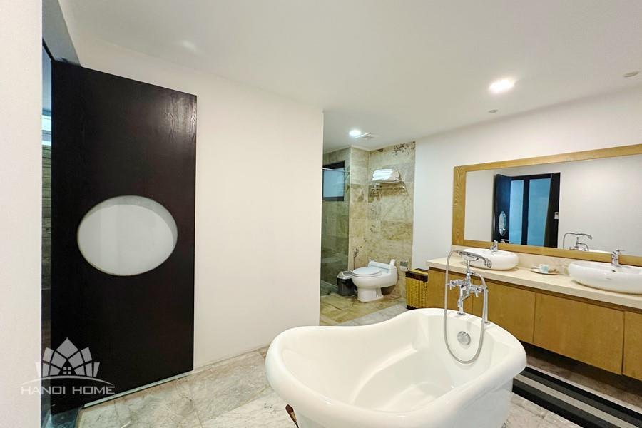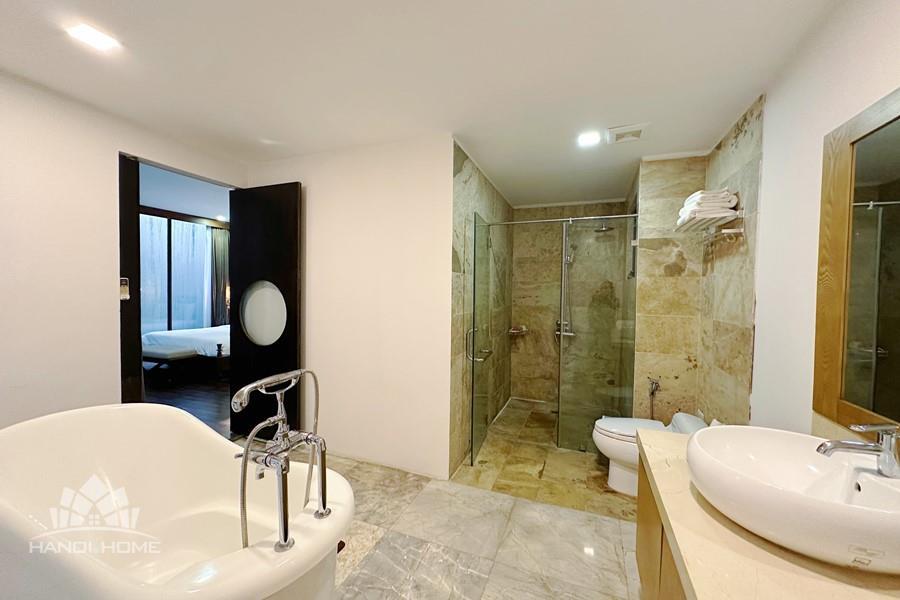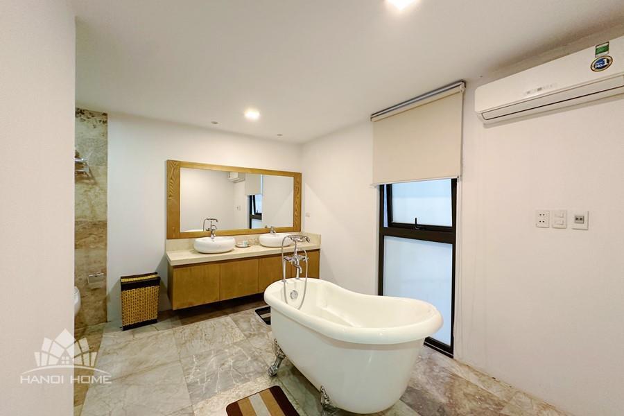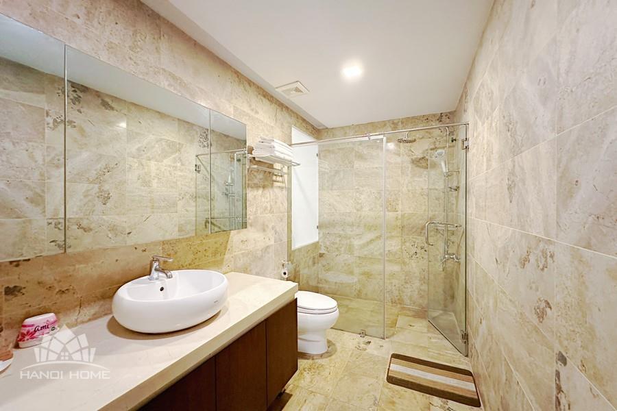 Bathrooms are clean and minimalist, fitted with premium fixtures. The apartment is situated in a secure and peaceful neighborhood, close to cafés, Japanese restaurants, supermarkets, and international amenities. It offers convenient access to central Hanoi, Nội Bài Airport, and nearby districts, making it an ideal long-term residence for families or expats.