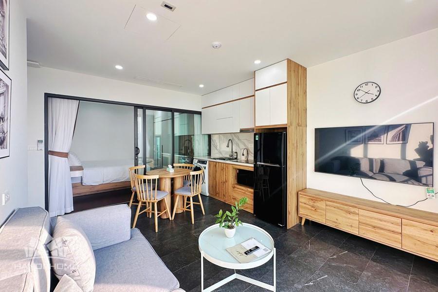 Welcome to a modern living space on Nhat Chieu street, one of the most desirable areas in Tay Ho District. This 60m² apartment is thoughtfully designed with two separate bedrooms, a well-equipped bathroom, and a spacious shared living area. A large balcony facing West Lake brings in natural light and fresh air throughout the day. The apartment comes fully furnished with brand-new items