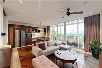 Nestled in the tranquil and green surroundings of Xóm Chùa, this 3-bedroom apartment offers a perfect blend of modern design and natural beauty. With a spacious layout and smart interior planning, the apartment feels open and airy from the moment you step inside.
