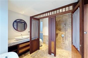 Additional amenities: High ceilings with wooden-blade ceiling fans, thoughtfully placed greenery, recessed lighting, and built-in air conditioning enhance comfort and style.
