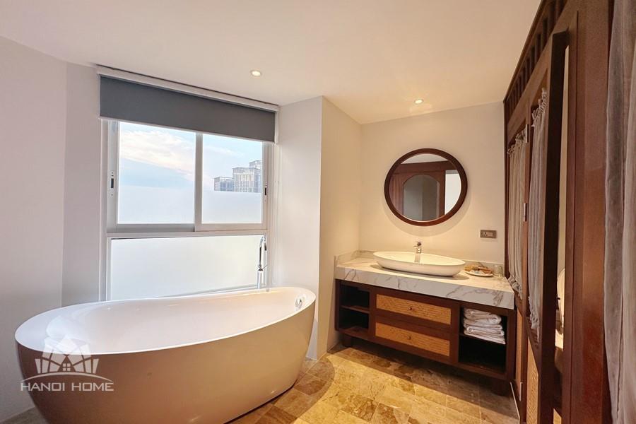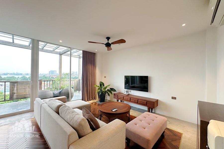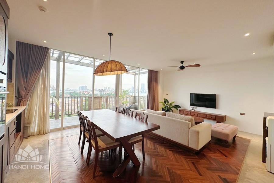 Spacious balcony with lake view: One of the apartment’s most valuable highlights is its wide balcony overlooking West Lake—perfect for enjoying romantic sunsets or peaceful mornings with coffee.