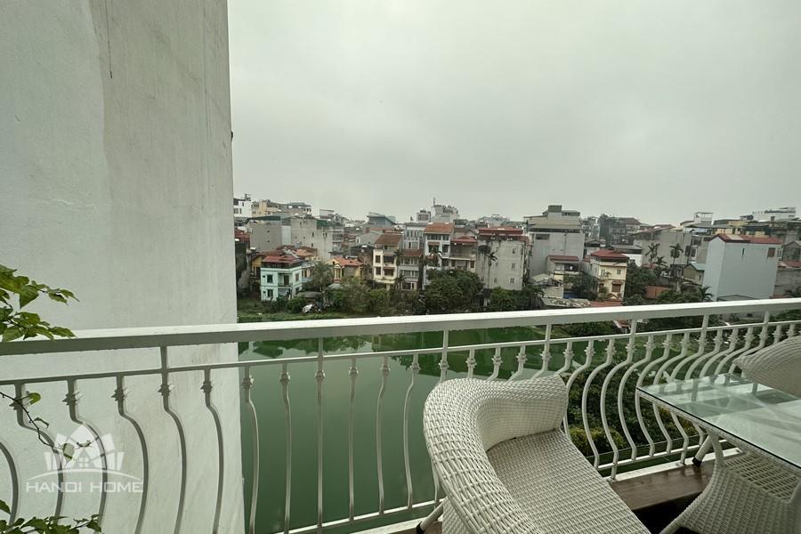Both bedrooms are designed to welcome natural light through large windows and are furnished with hotel-standard beds, built-in wardrobes, and work or vanity desks. The spacious balcony is a standout feature, offering panoramic views of West Lake—perfect for enjoying the morning sun or a romantic sunset.