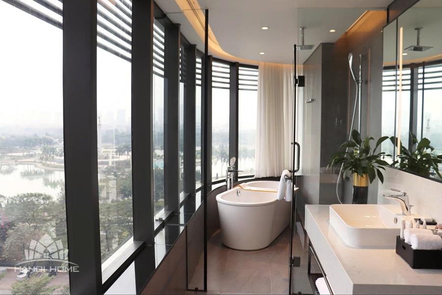 Luxury 3-bedroom serviced apartment in a premium building in Tay Ho, featuring a panoramic park view. Fully furnished with high-end interiors, spacious living area, and a fully equipped modern kitchen. The rent includes professional housekeeping, linen and towel service, high-speed internet, cable TV, water supply, 24/7 reception and security, on-site technicians, backup generator, and full management services. Ideal for families or executives seeking elegant serviced living in West Lake.