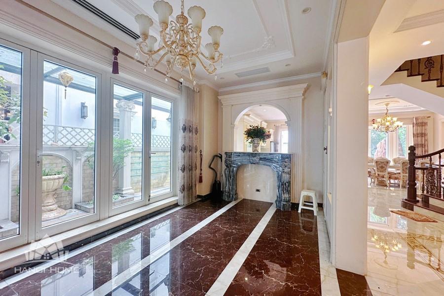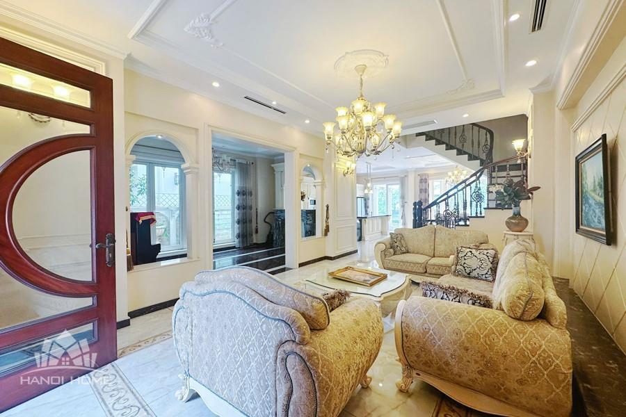 Located in the prestigious and verdant Vinhomes Riverside urban area, this 3-bedroom villa stands as a symbol of luxurious living where timeless classical design meets warmth and comfort. With meticulous architectural detailing and generously proportioned spaces, it offers a perfect sanctuary for families seeking refinement and serenity.