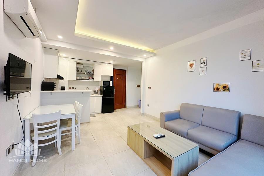 This well-maintained one-bedroom apartment is located on the 3rd floor of a serviced building on Nhat Chieu Street, Tay Ho District. The apartment comes fully furnished with good furniture and a functional layout, offering a comfortable living space filled with natural light. Situated in a quiet and pleasant neighborhood, it is just a short walk to West Lake, with easy access to cafés, restaurants, and local amenities, making it an ideal home for singles or couples.