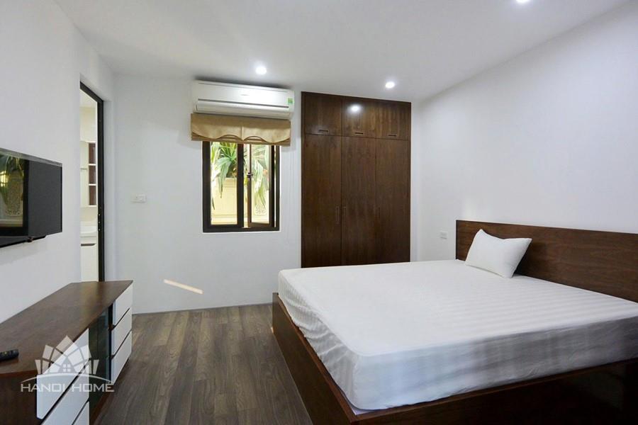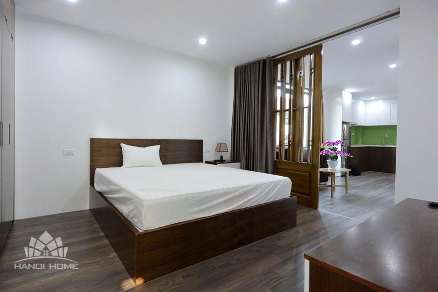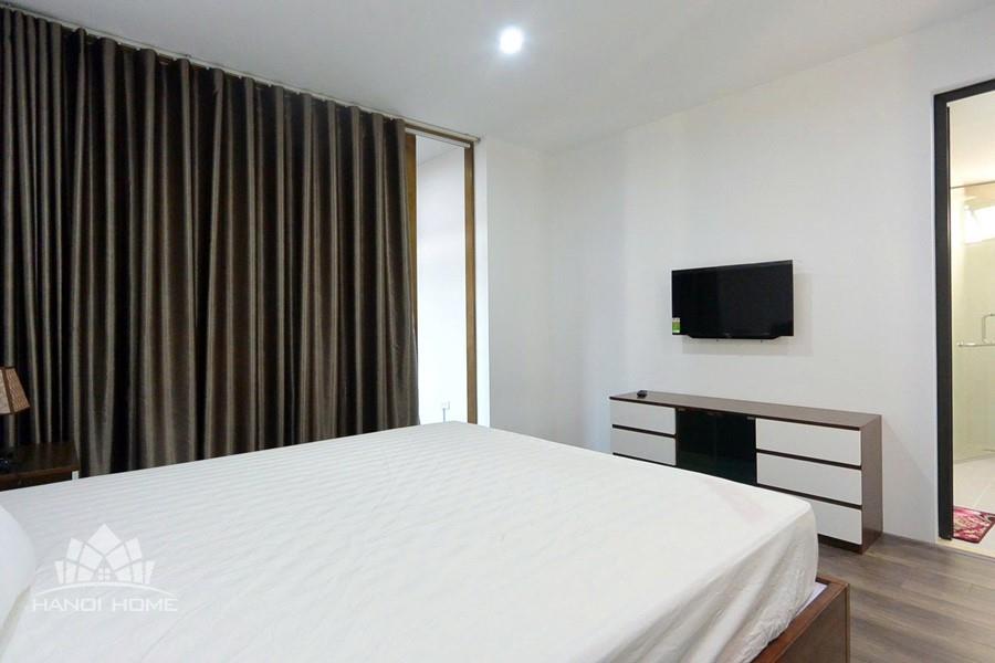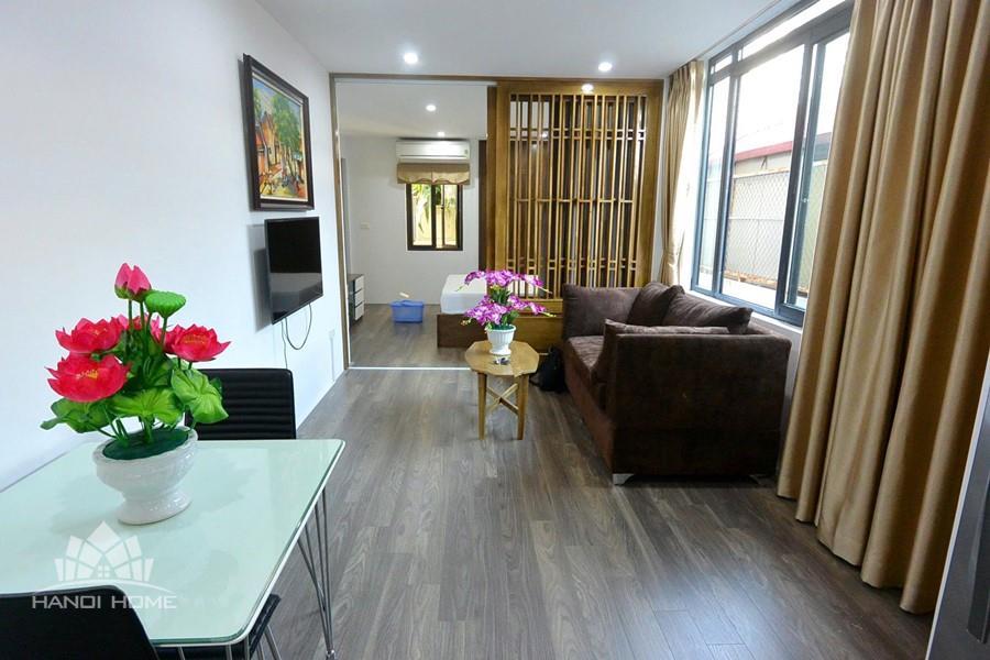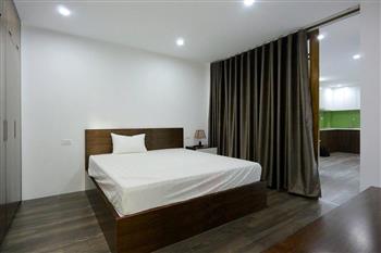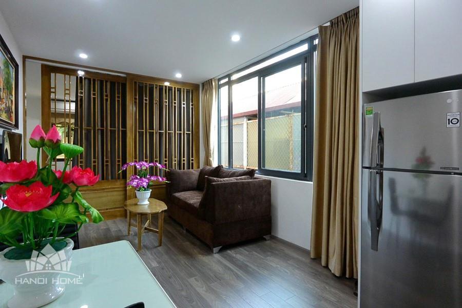 This one-bedroom apartment on Xuan Dieu Street, Tay Ho is an ideal choice at a great price, located in one of Hanoi’s most vibrant and romantic neighborhoods. The highlight of the apartment lies in its warm and artistic design, harmoniously blending modern style with natural wood elements, set against dark wooden flooring and crisp white walls. Elegance is reflected in the thoughtfully arranged open layout that still ensures privacy. The living room and bedroom are cleverly separated by wooden slatted partitions and sliding glass doors, allowing natural light from large windows to flow throughout the space, creating a sense of openness and airiness. The apartment comes fully furnished—tenants can simply move in with their suitcase. This is a perfect combination of prime location, distinctive design, and complete amenities, offering a high-quality living experience in the heart of Tay Ho.