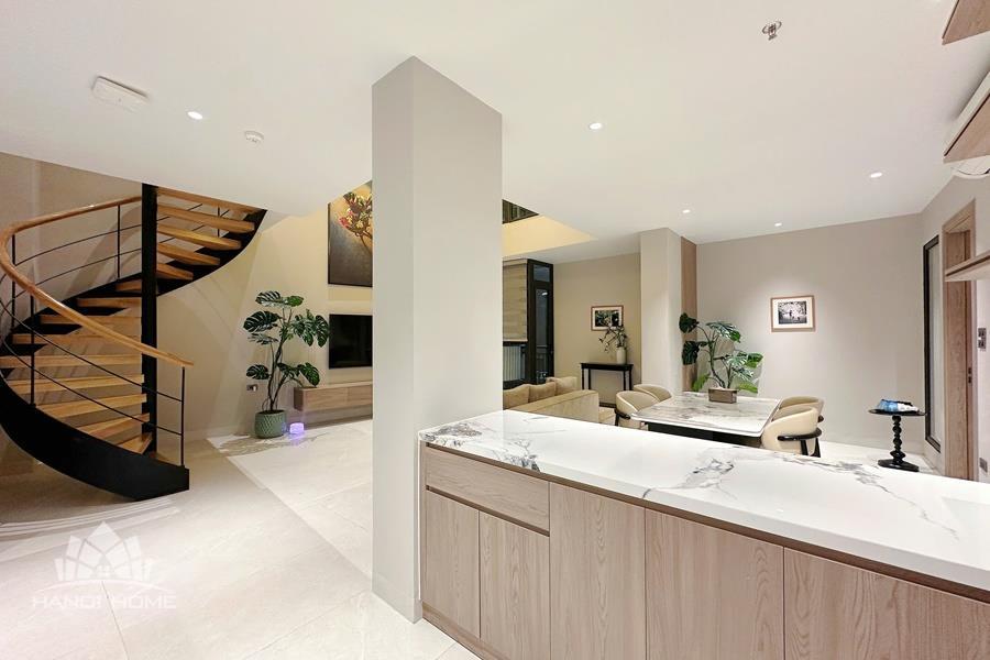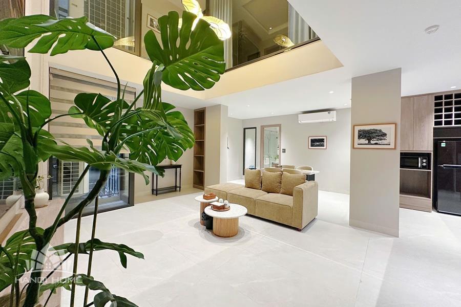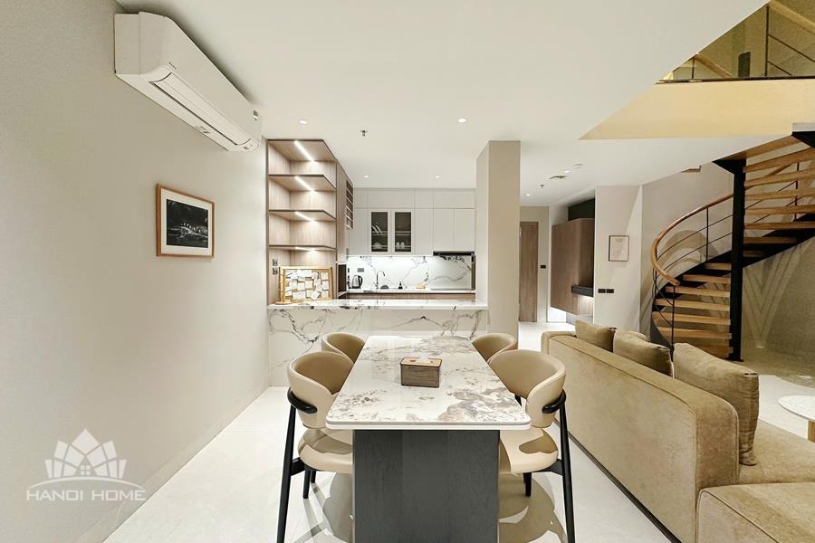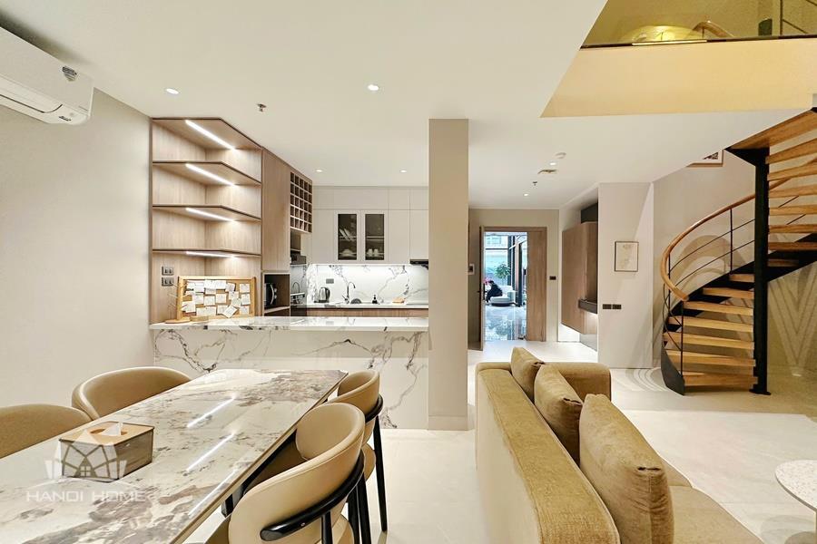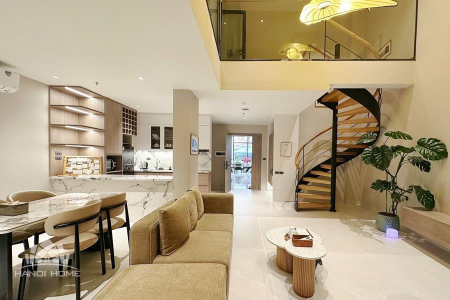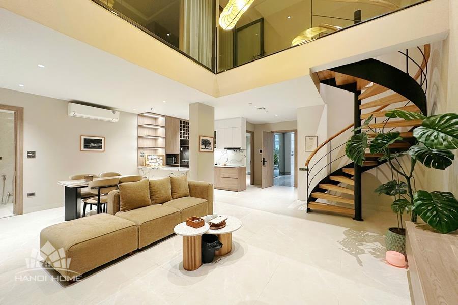 High-quality 2-bedroom duplex apartment for rent in the heart of Tay Ho, featuring a modern and sophisticated design. The duplex layout creates a clear separation between living and sleeping areas, offering both comfort and privacy. The spacious living room is bright and airy, with large windows that allow plenty of natural light, and is seamlessly connected to a contemporary open-plan kitchen fully equipped with high-end appliances and ample storage space. Both bedrooms are well-sized and thoughtfully designed, suitable for restful living or home office use. The apartment includes 2 modern bathrooms with stylish finishes, premium sanitary fittings, and walk-in showers. Located in the central area of Tay Ho, the apartment is just a short distance from West Lake, international schools, restaurants, cafés, supermarkets, and other daily amenities. Please contact us for free viewing..