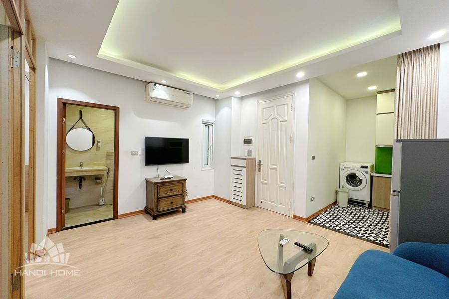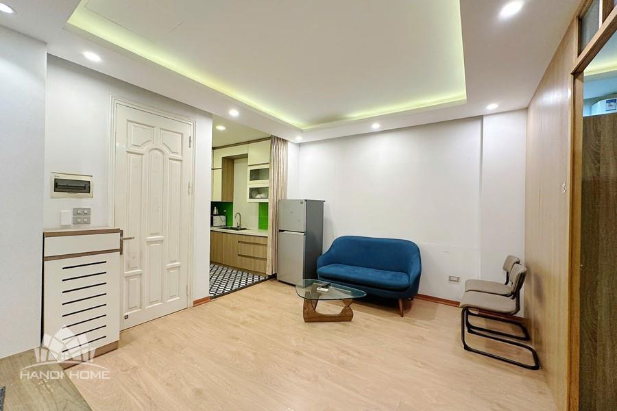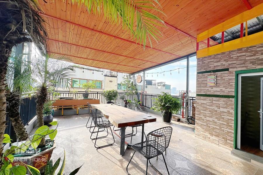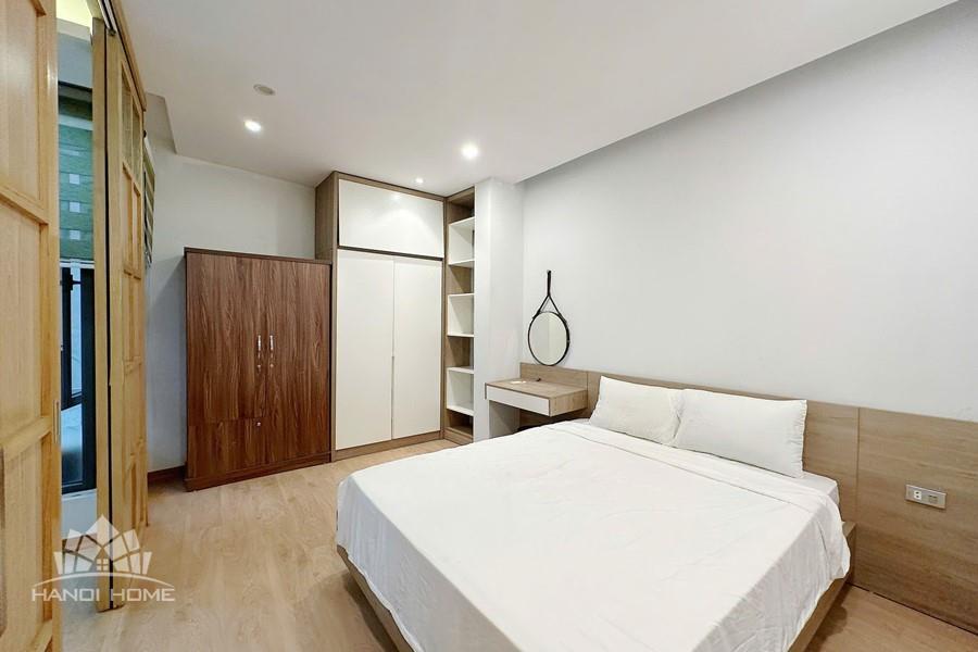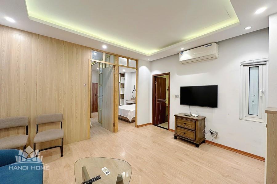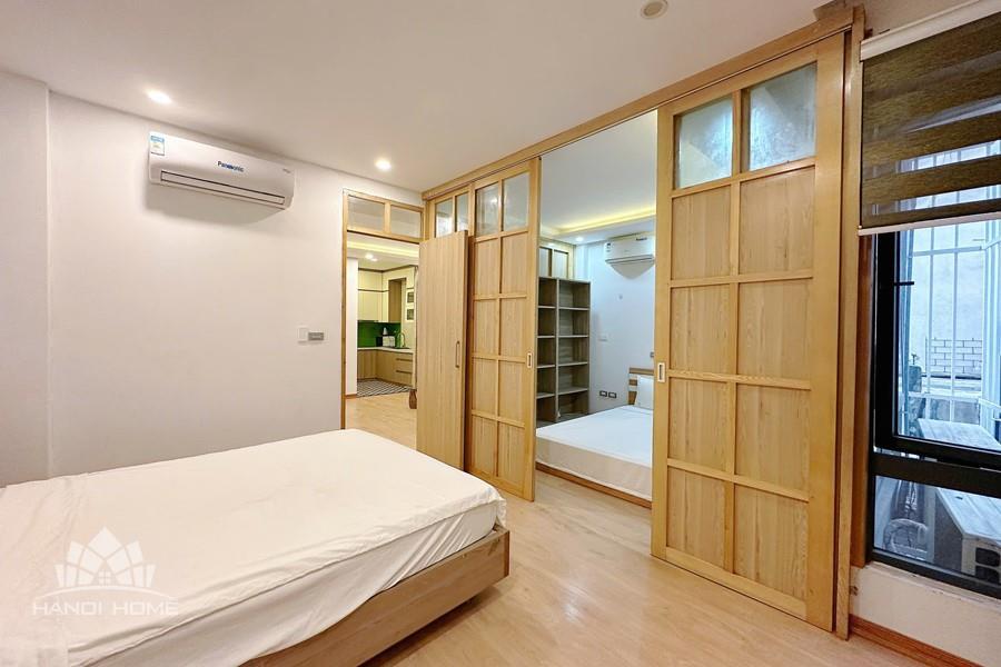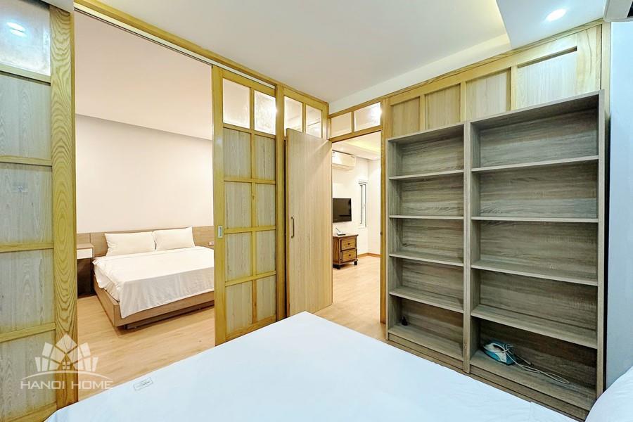 Located in the quiet and historic neighborhood of Ba Dinh, this apartment offers a tidy, elegant living space with a Zen-inspired atmosphere. With a well-proportioned layout, the apartment is designed in a minimalist Japanese style, emphasizing harmony, natural light, and functional simplicity in every detail. The two bedrooms are smartly arranged, featuring light wood furnishings, sliding doors, and clean lines that create a calming and intimate ambiance. The apartment is fully equipped with modern amenities, ready for a comfortable lifestyle. A standout feature of the apartment is the spacious rooftop terrace, adorned with greenery and outdoor seating—perfect for relaxing, reading, or hosting intimate gatherings.