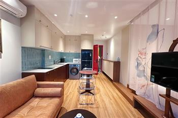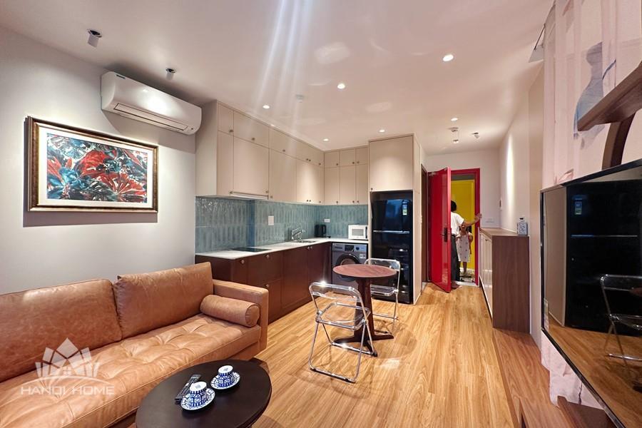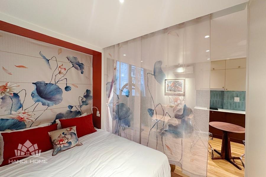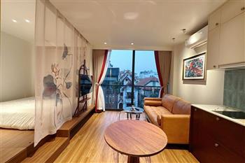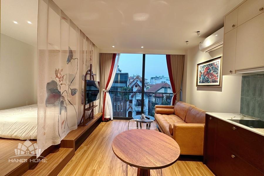 This studio apartment on To Ngoc Van Street, Tay Ho embodies the essence of Japanese minimalism with a refined and harmonious design. Though compact in size, the space is thoughtfully arranged to feel open and airy. Neutral tones paired with natural wood elements create a warm and inviting atmosphere. A spacious balcony is a standout feature, welcoming abundant natural light and offering a peaceful view of the quiet neighborhood where modern and traditional architecture blend seamlessly. This apartment is an ideal choice for those who appreciate simplicity, tranquility, and a lifestyle connected to nature in the heart of the city.