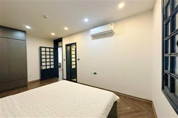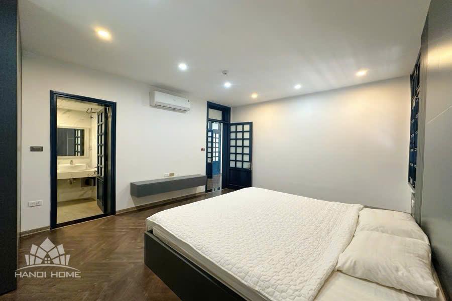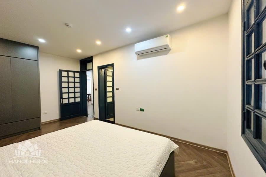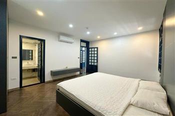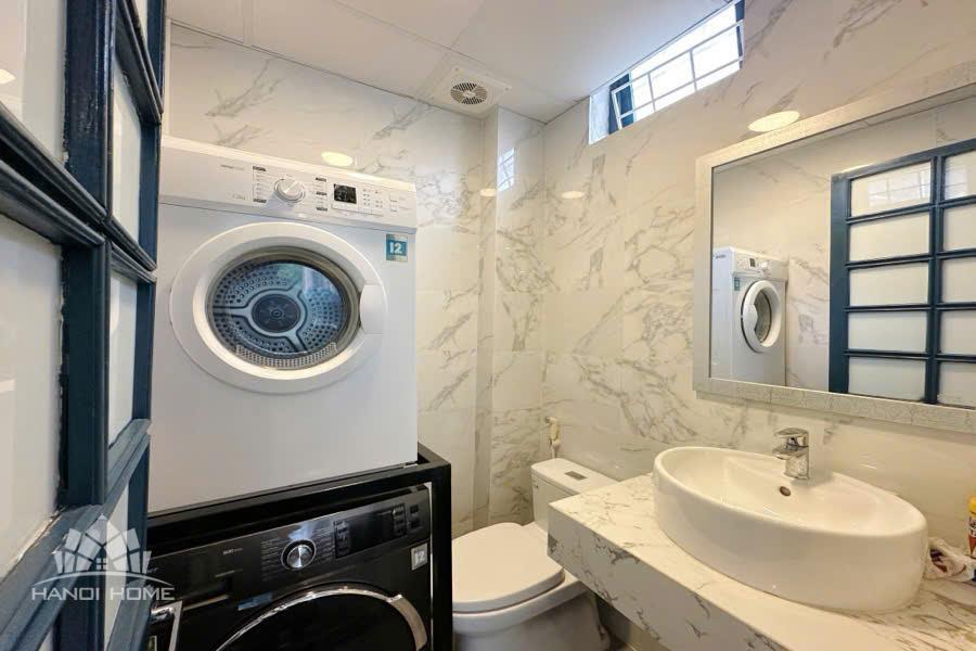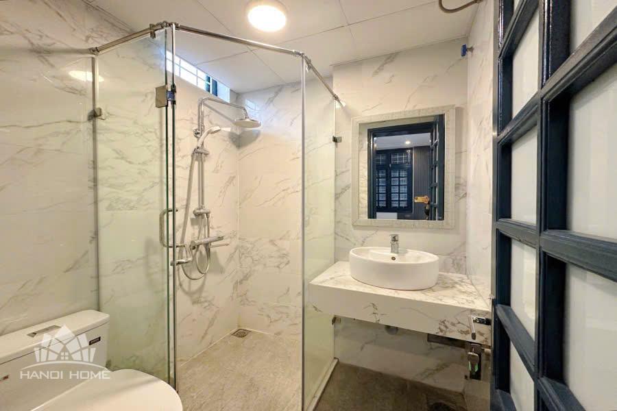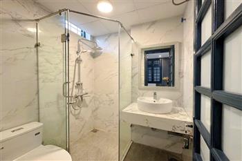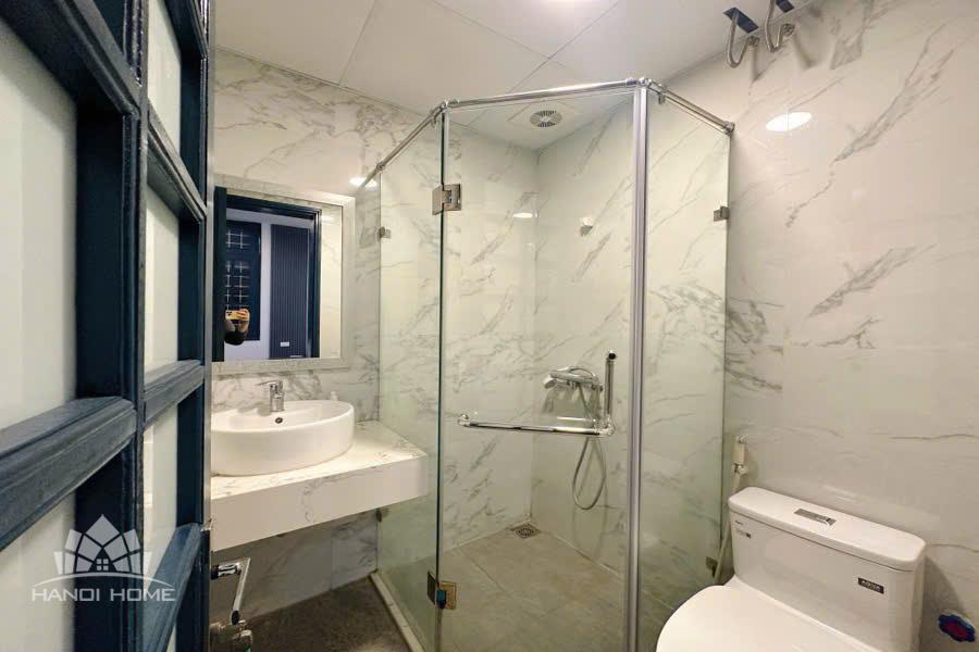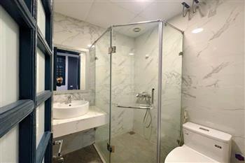 The bedroom maintains a minimalist theme with soothing grey and white tones, complete with a large wardrobe and all necessary amenities. The sophisticated bathroom is clad in Marble-veined tiles. The spacious balcony is an ideal spot to relax, enjoy the fresh air, and take in the view of the tree-lined road running alongside the lake, making this apartment an ultimate, desirable home in Tay Ho.