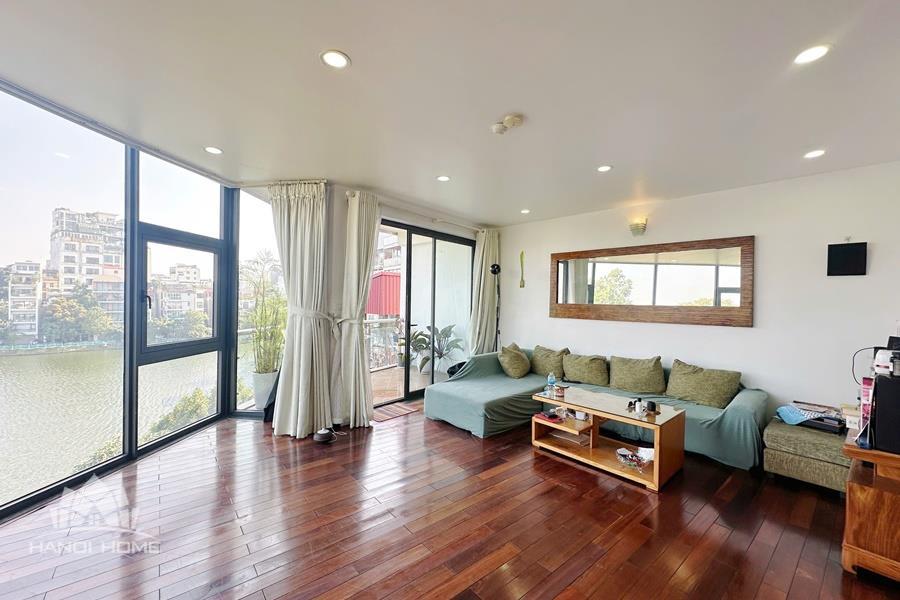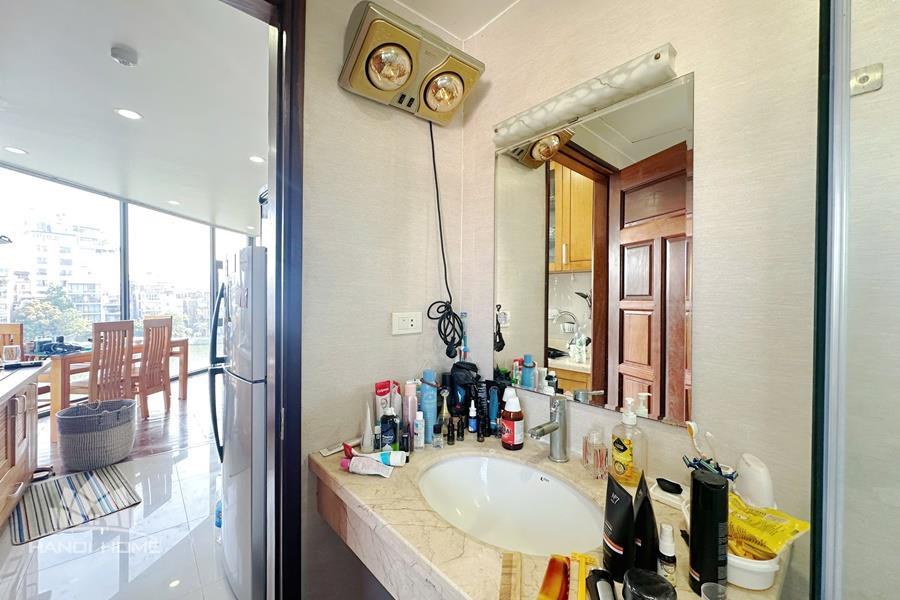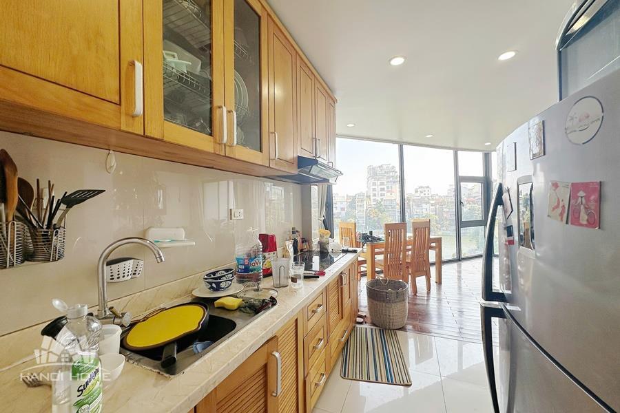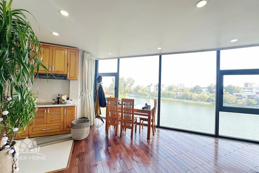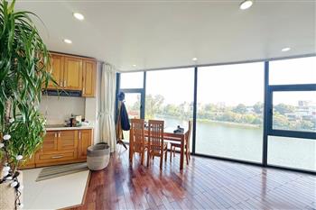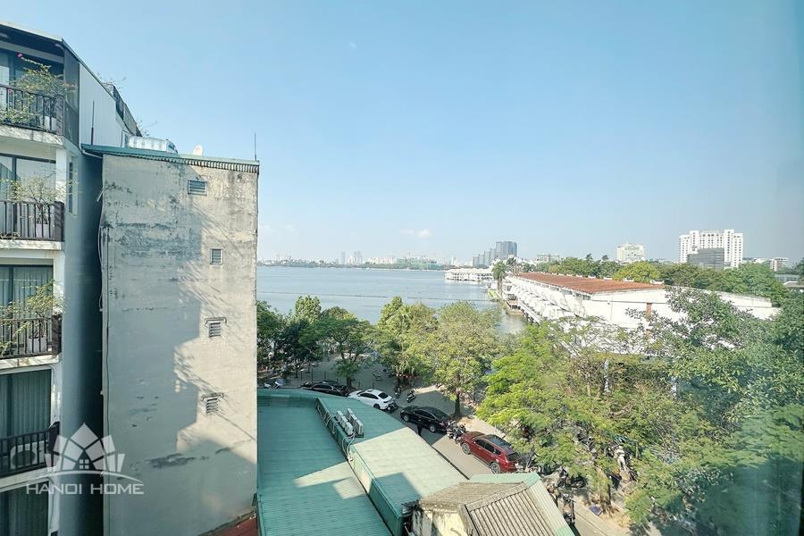 This lake-view 1-bedroom apartment is located on a high floor in the peaceful Vu Mien area of Tay Ho. The apartment is bright and airy, featuring large windows that offer stunning views of the lake and plenty of natural light throughout the day. It comes well designed with a comfortable living area, a cozy bedroom, and a functional kitchen suitable for daily living. The quiet surroundings make it an ideal home for those seeking privacy and relaxation, while still being close to West Lake, cafés, restaurants, and daily amenities. A perfect option for tenants who value tranquility, natural light, and beautiful lake views in Tay Ho.