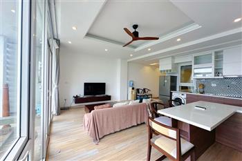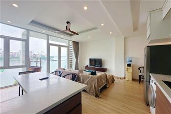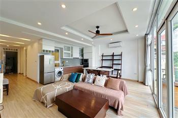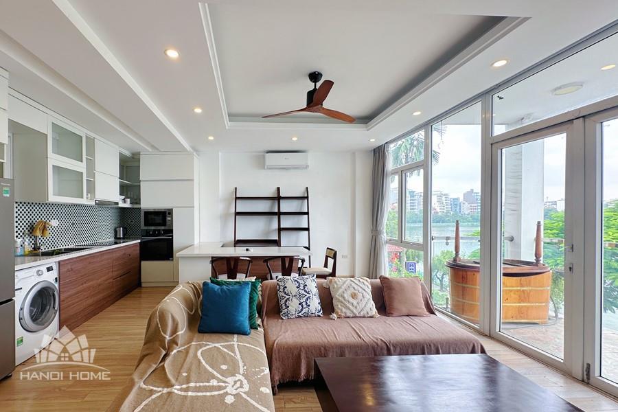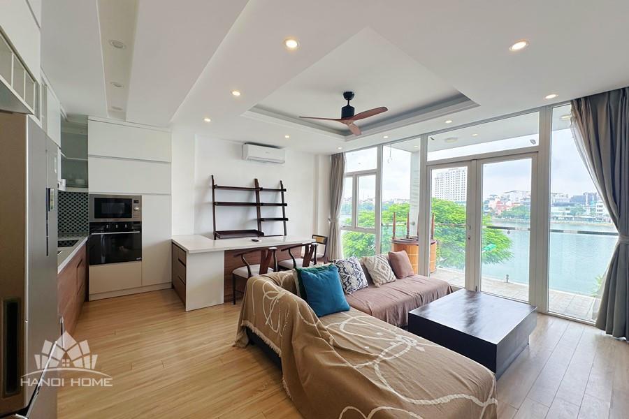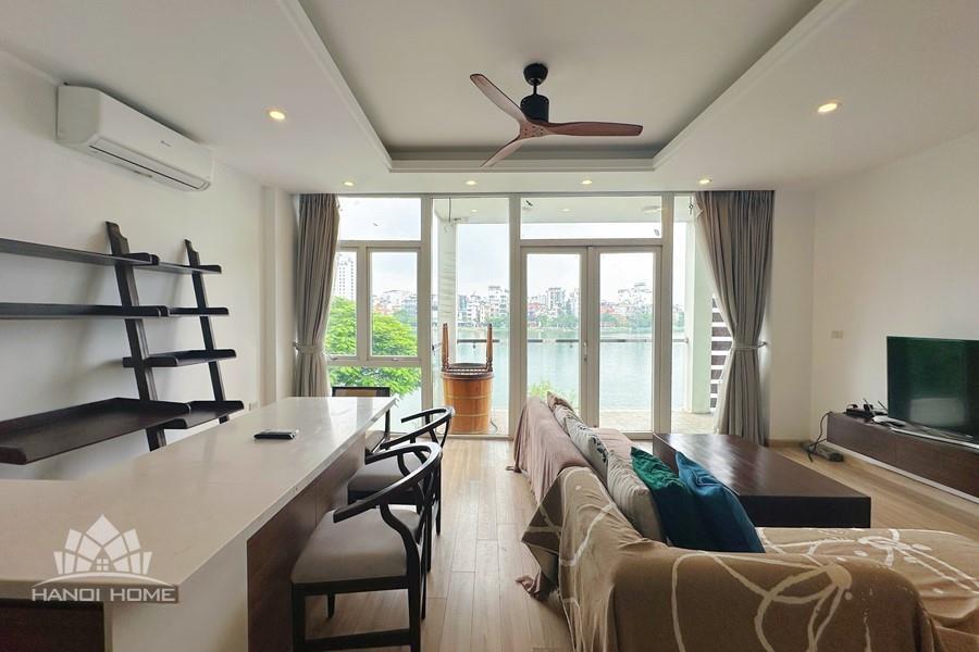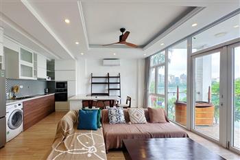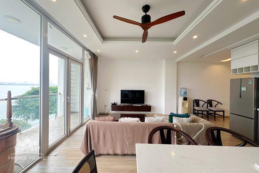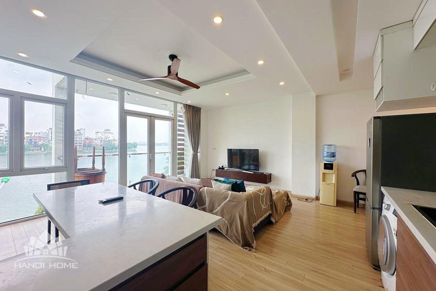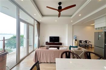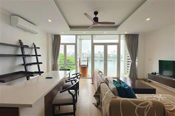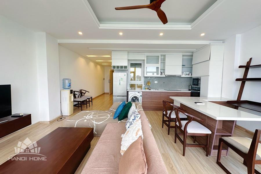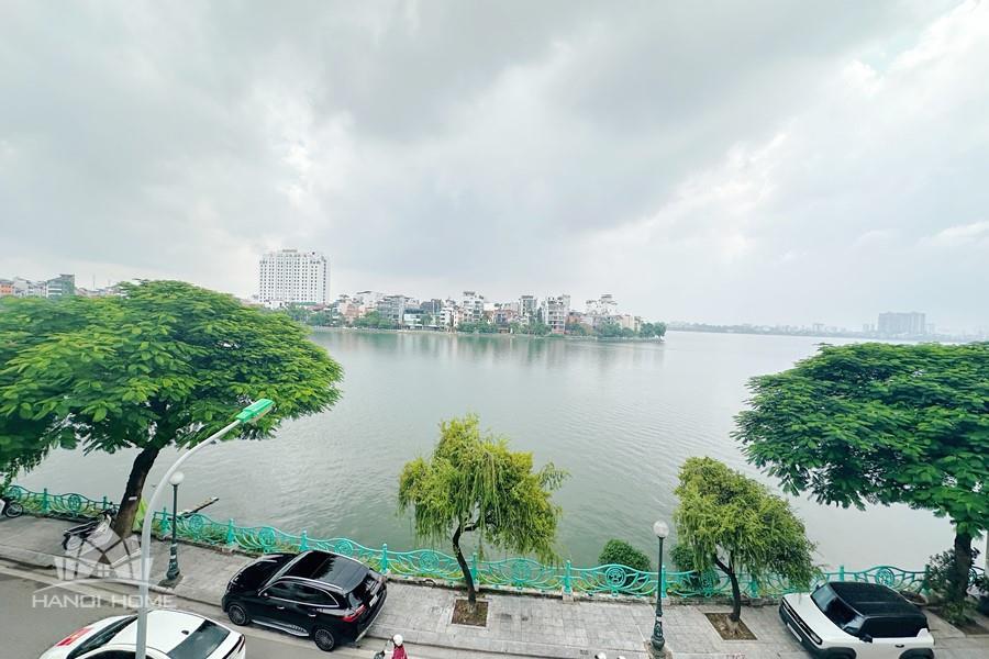 2-bedroom apartment for rent in Quang An, Tay Ho. This stunning residence offers a refined living experience in one of Hanoi’s most sought-after neighborhoods. The apartment features a spacious layout with two well-appointed bedrooms, a bright living area, and a large balcony that opens up to a breathtaking view of West Lake—perfect for enjoying morning coffee or sunset evenings. Designed with elegance in mind, the interior showcases carefully selected furnishings that blend modern comfort with timeless style. From the plush sofa to the sleek dining set and high-end kitchen appliances, every detail has been thoughtfully curated. The natural hardwood flooring throughout adds warmth and sophistication, complementing the soft lighting and neutral tones of the space. The apartment is fully equipped with essential amenities including air conditioning, smart TV, refrigerator, washing machine, and built-in storage. Large windows allow for abundant natural light, enhancing the airy and serene atmosphere. Located in a quiet, secure area with easy access to cafés, restaurants, and lakeside walking paths, this home is ideal for professionals, couples, or small families seeking tranquility and style in central Hanoi.