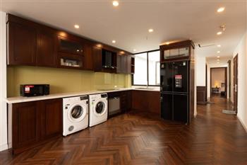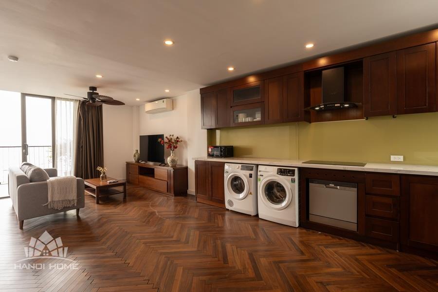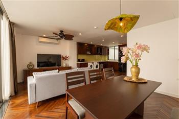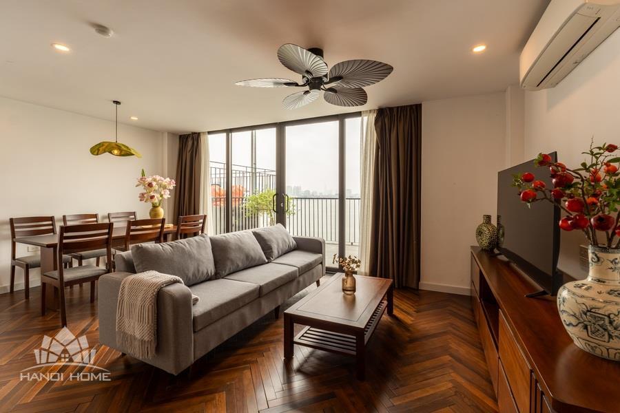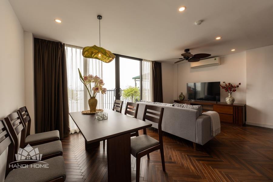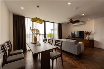 Discover your ideal home on Vu Mien street, Tay Ho area with this spacious 2-bedroom apartment. Designed with a blend of modern style and premium natural wooden furnishings, the apartment creates a cozy yet refined atmosphere perfect for comfortable living.
