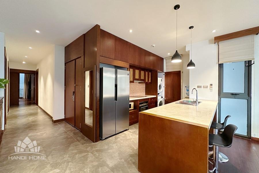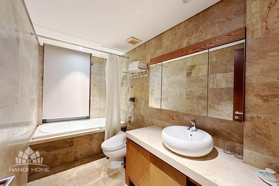 The open-plan layout connects the living room, kitchen, and dining area seamlessly, making it convenient for family activities and entertaining guests. Each bedroom is spacious, equipped with large windows and full furnishings to ensure privacy and comfort for every family member. With built-in ceiling air conditioning, recessed LED lighting, and meticulous finishing touches, this apartment is a perfect choice for those seeking a sophisticated living space in the heart of Hanoi.