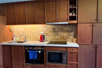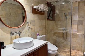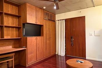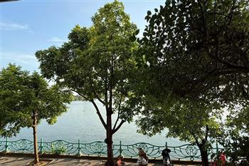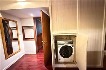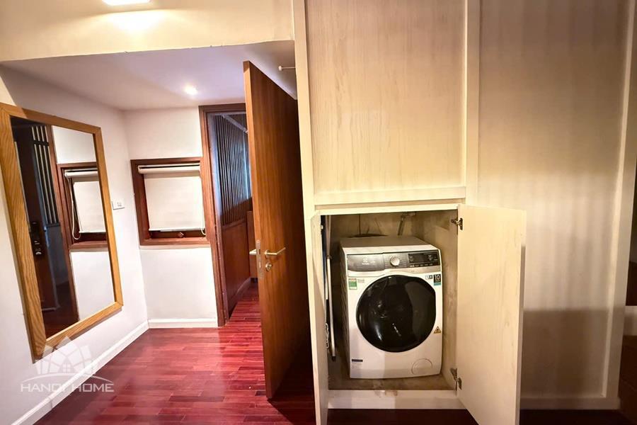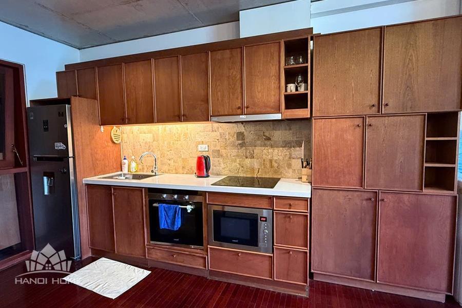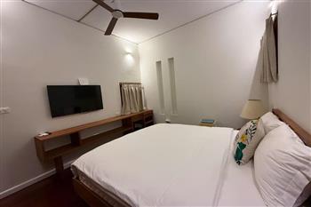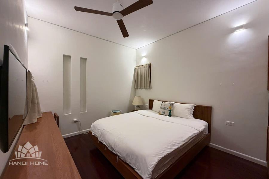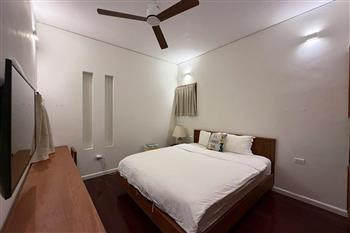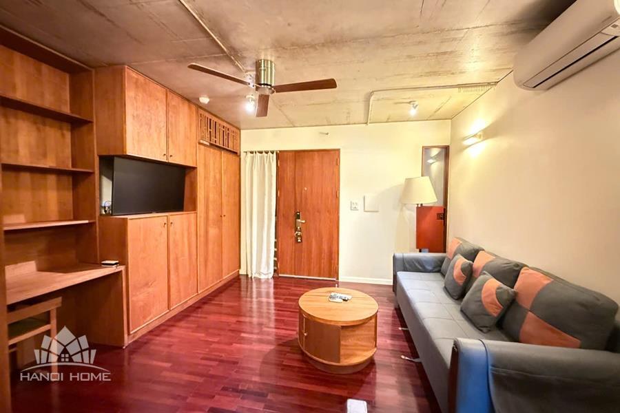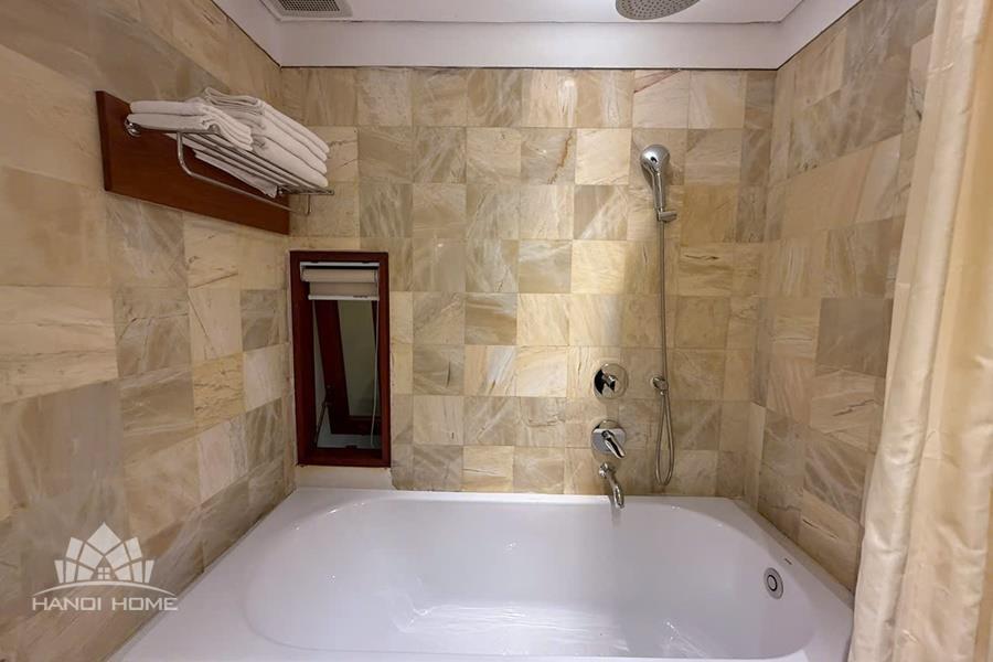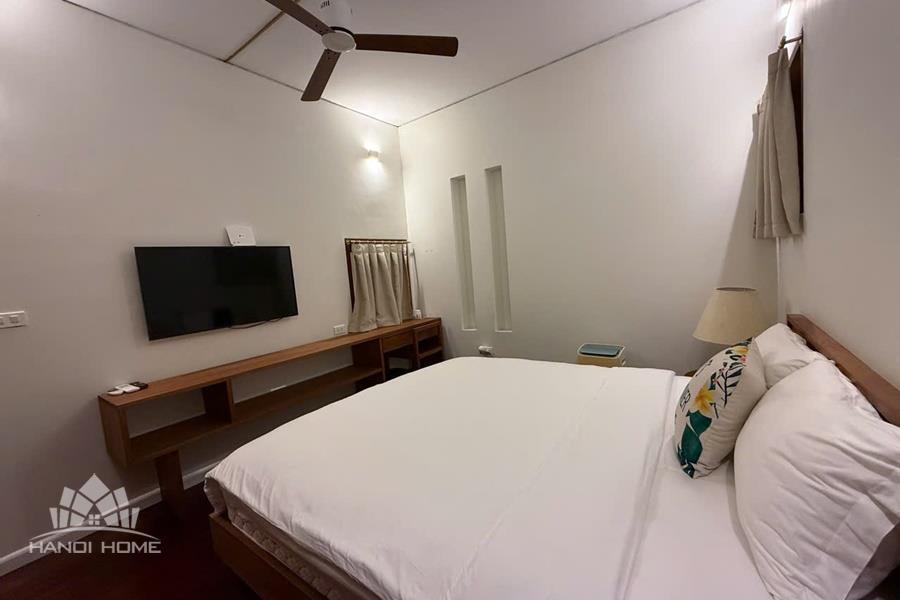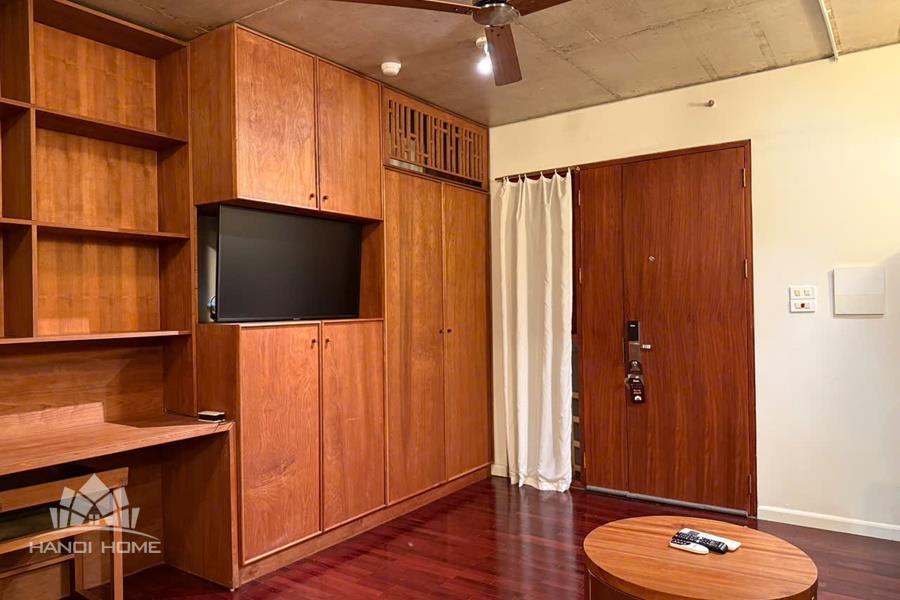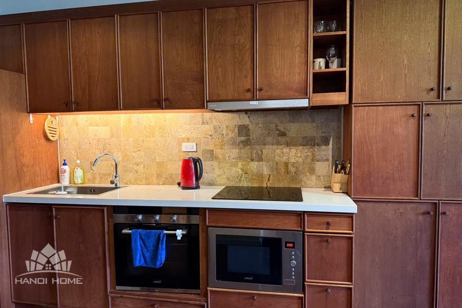 This 2 bedroom apartment with Japanese design, focusing on simplicity, elegance, and a strong connection with nature, offering a stunning view of West Lake. The living room features wood flooring and simple furniture. A low wooden tea table, surrounded by linen cushions, creates a cozy and inviting atmosphere. Floor-to-ceiling glass walls offer a panoramic view of West Lake, allowing natural light to flood the space. Bamboo or sheer white fabric curtains add a touch of lightness and relaxation. This apartment blends traditional Japanese aesthetics with modern amenities, creating a serene living environment with a stunning view of West Lake.