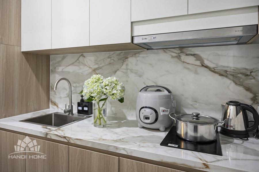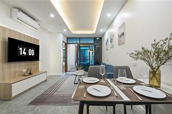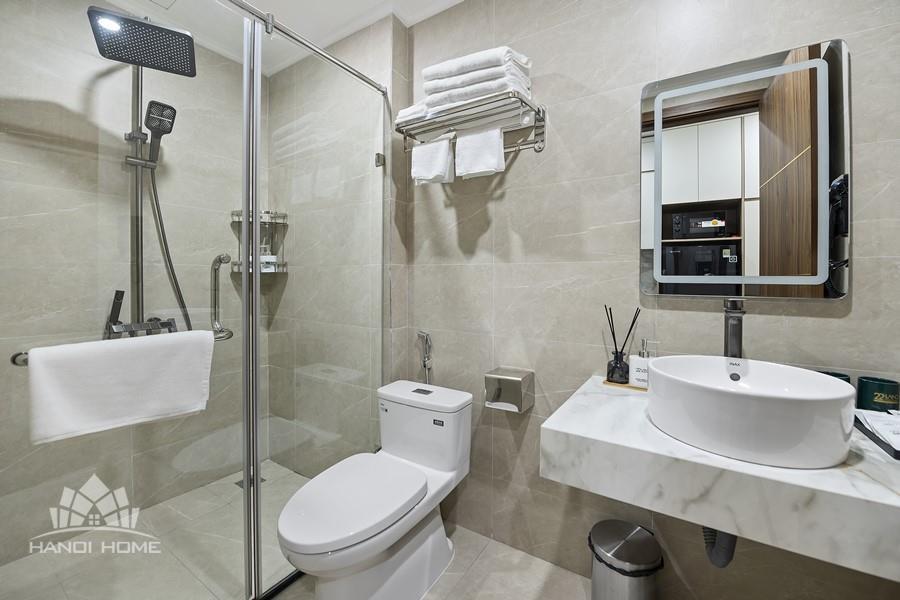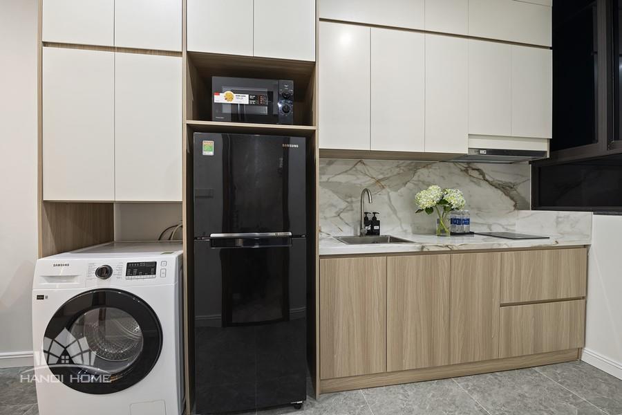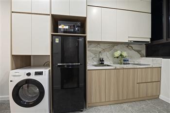 The apartment is fitted with a smart lighting system, creating a warm and brilliant ambiance. Specifically, residents also enjoy professional housekeeping service, ensuring a living environment that is always clean and maximally convenient. This is the perfect choice for a comfortable and high-class lifestyle in Tay Ho.