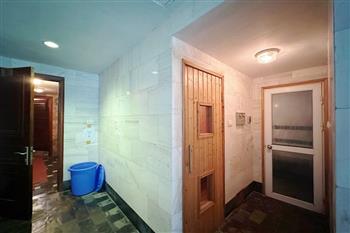 Large balcony with city and green residential views. It’s the perfect spot to relax and enjoy the fresh air. The convenient bathroom features a glass shower partition and includes a modern front-loading washing machine, maximizing functionality. These include a sophisticated indoor swimming pool with elegant blue tiling and dedicated relaxation areas. Additionally, a fully equipped gym ensures a healthy and convenient lifestyle is right at your doorstep.