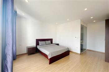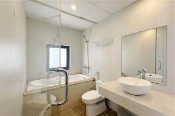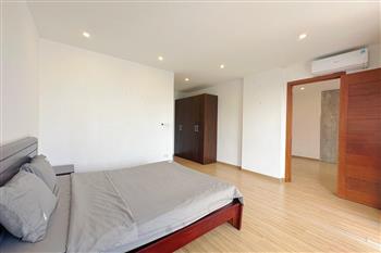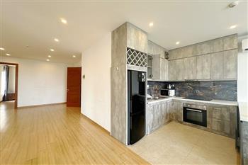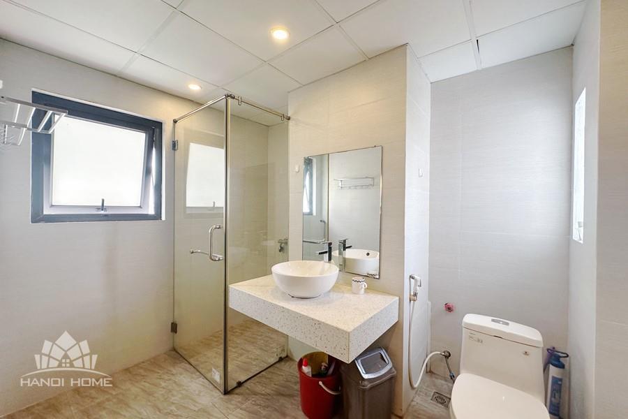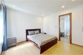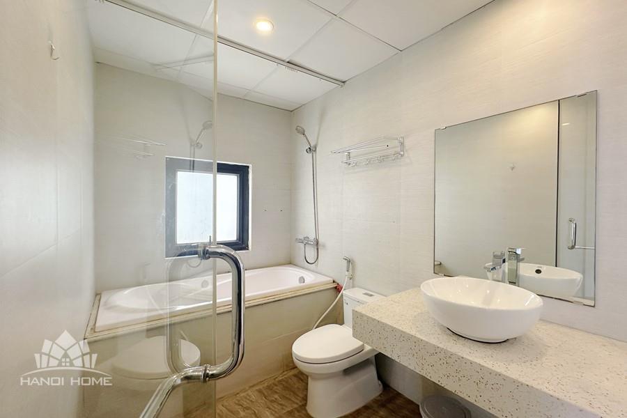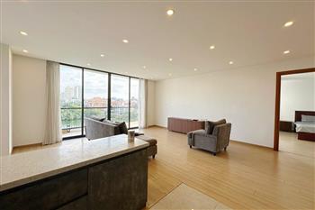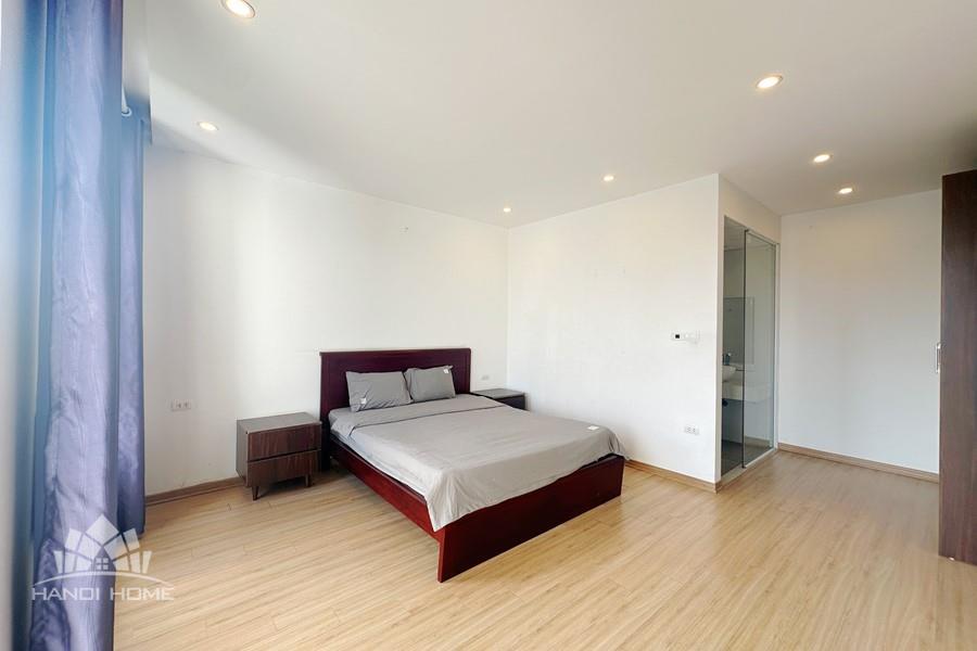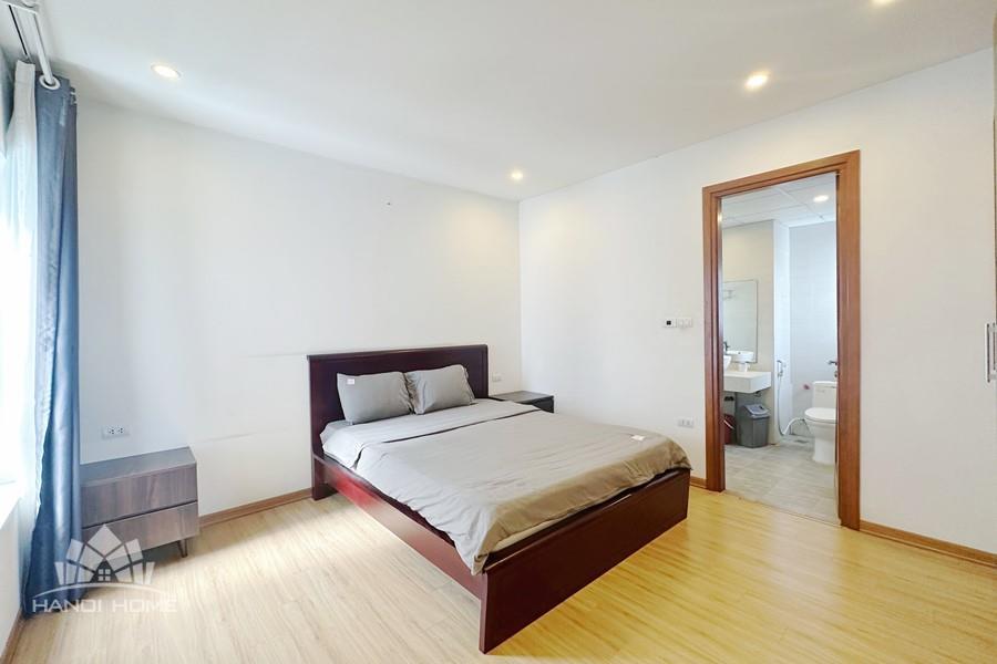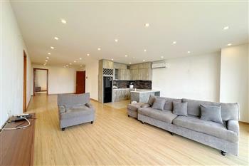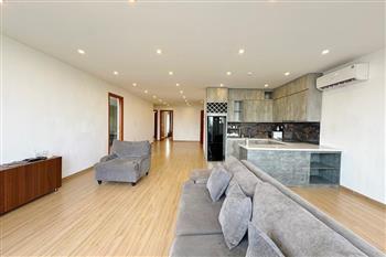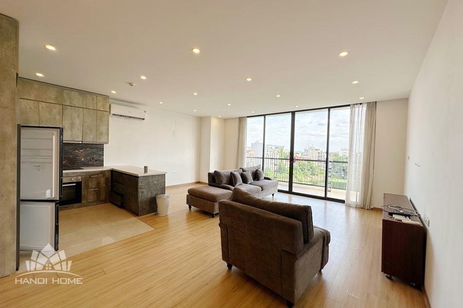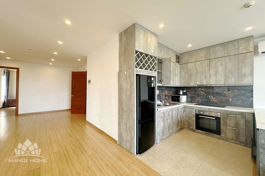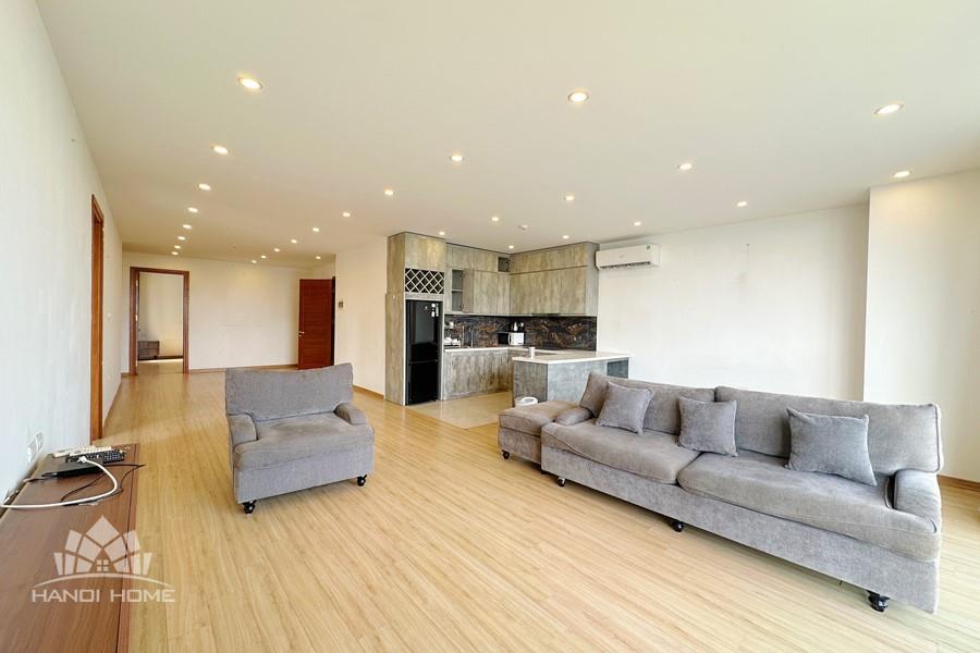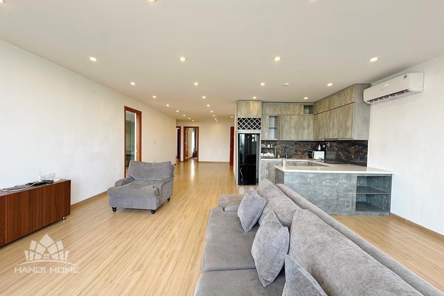This 3-bedroom apartment on Au Co, Tay Ho, features a contemporary style with a spacious, open-plan design that maximizes light and space. Bright, natural wooden flooring flows throughout the main living area, creating a warm and airy feel.