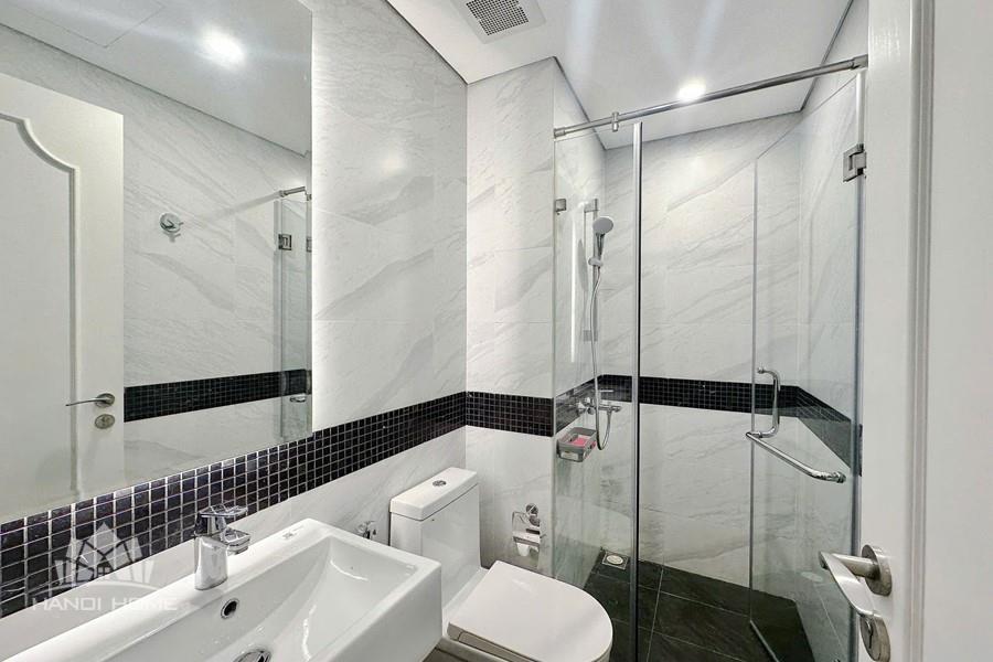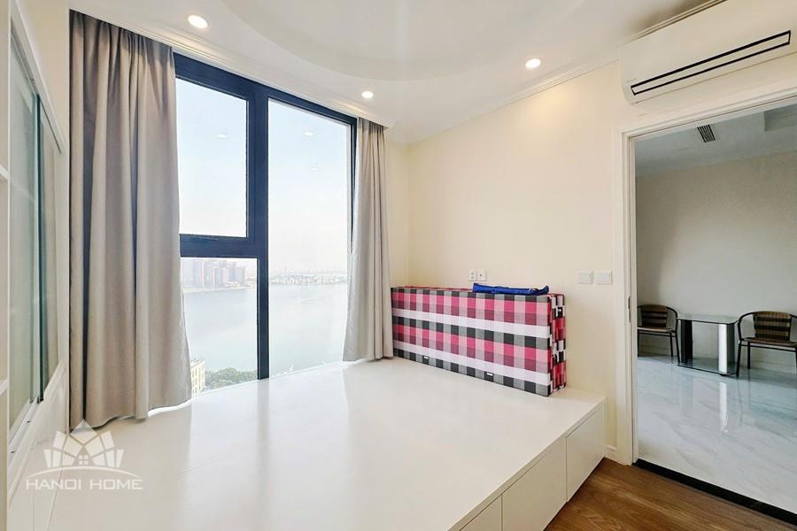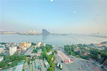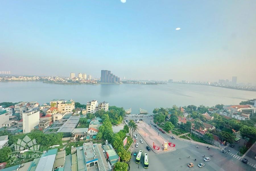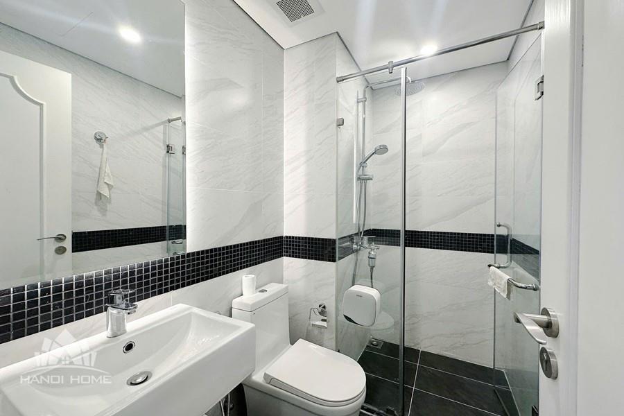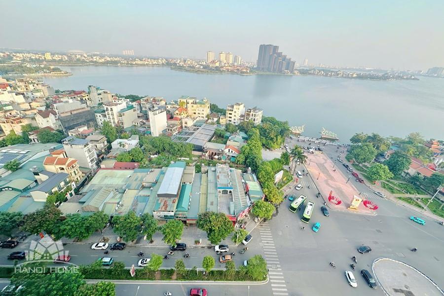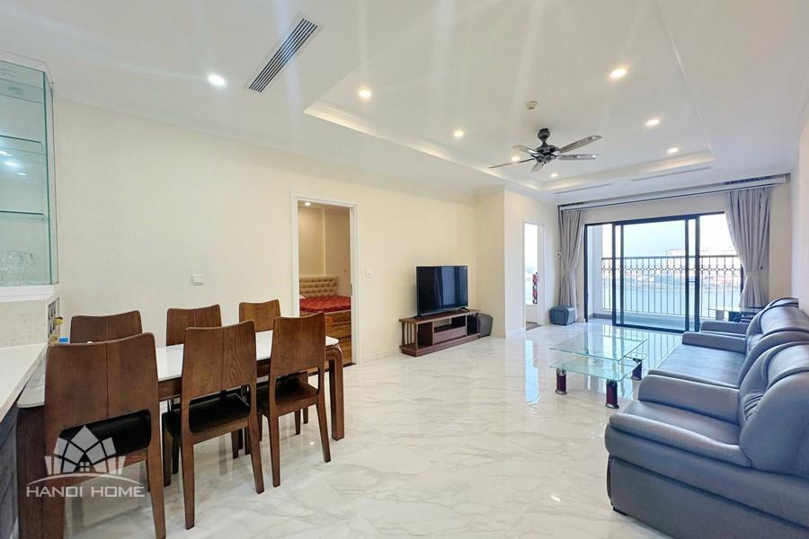 This stylish and modern apartment is located in the prestigious El Dorado building in Tay Ho, offering breathtaking views of West Lake and a comfortable, high-end living experience. Property Details: • Area: 89m² • Layout: 2 bedrooms, 2 bathrooms • Fully furnished with contemporary furniture and high-quality appliances • Panoramic lake view from living room and master bedroom Layout: • Living area: Bright and spacious living room with large floor-to-ceiling windows overlooking West Lake, connected to a cozy dining space. • Kitchen: Open-plan kitchen fully equipped with built-in oven, induction stove, microwave, and refrigerator. • Bedrooms: 2 well-appointed bedrooms with ample natural light, including a master bedroom with en-suite bathroom and lake view. • Bathrooms: 2 modern bathrooms with glass shower cabins and high-end sanitary fittings. Location & Amenities: • Located in El Dorado Tay Ho, one of Hanoi’s most sought-after residential towers, known for its prime location and elegant design. • Walking distance to West Lake, cafes, restaurants, and international schools. • Building amenities include 24/7 security, reception, swimming pool, fitness center, and basement parking. • Only 15 minutes to the Old Quarter, 30 minutes to Nội Bài International Airport.